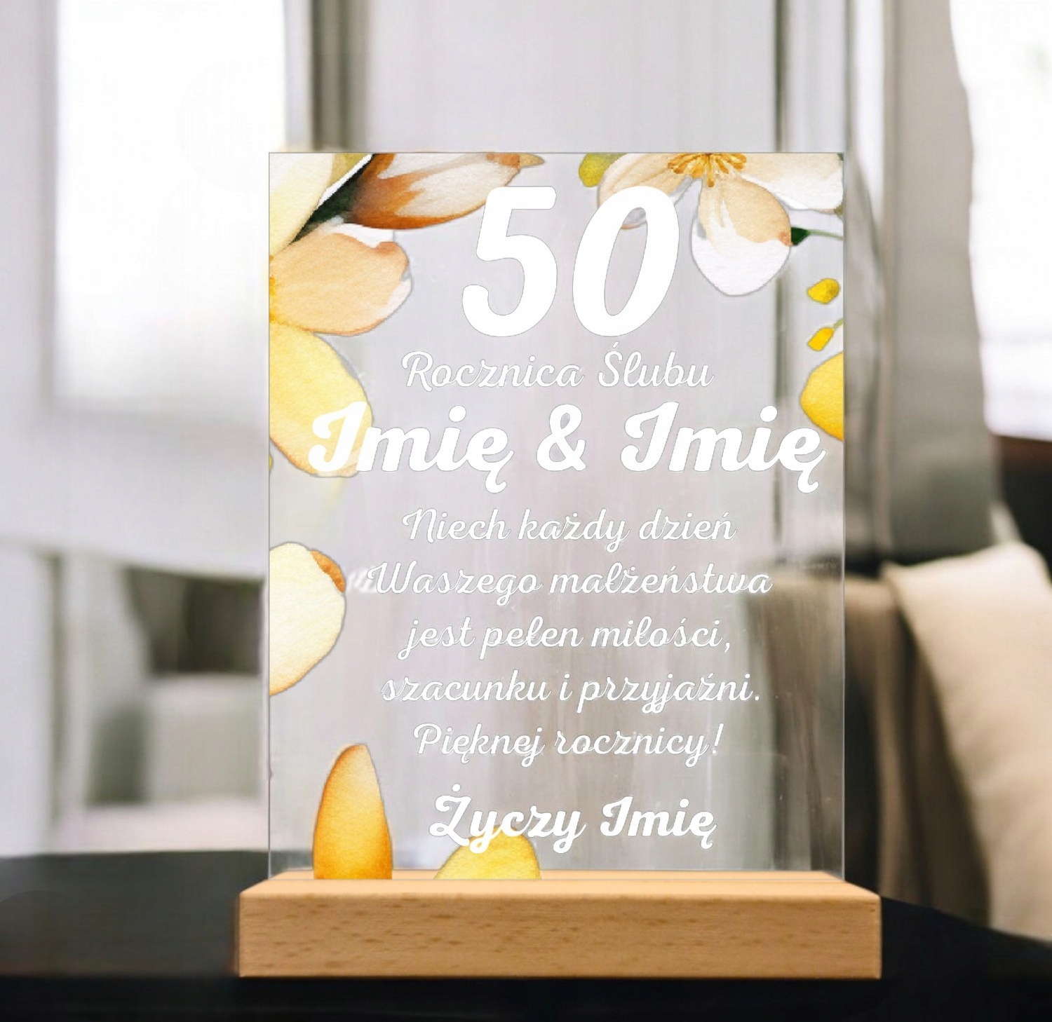 Personalizowana Akrylowa Statuetka na Prezent z Życzeniami – 50 Rocznica Ślubu