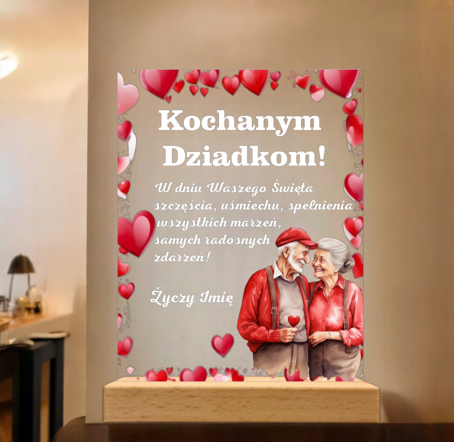 Personalizowana Akrylowa Statuetka na Prezent z Życzeniami – Dzień Babci i Dziadka