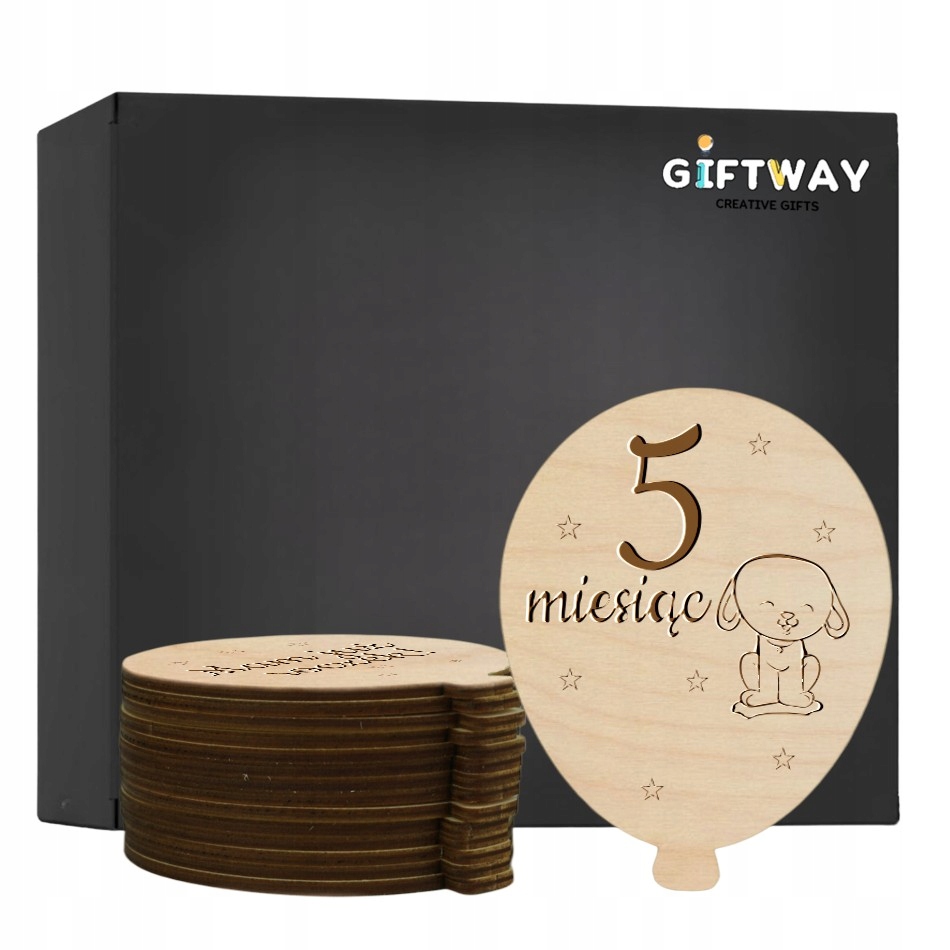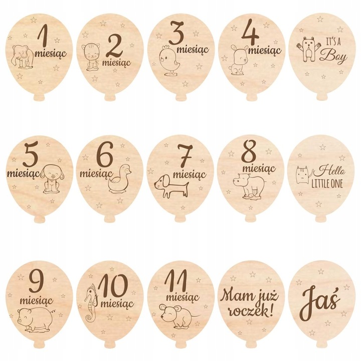 Drewniane Tabliczki do Zdjęć – Pierwszy Rok Życia Dziecka 15 szt. – Balony zwierzaki