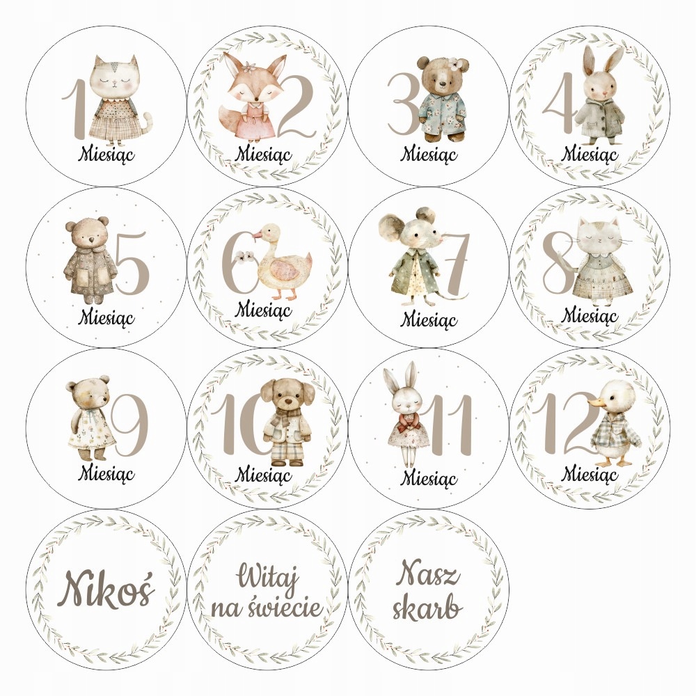 Drewniane Tabliczki do Zdjęć – Pierwszy Rok Życia Dziecka 15 szt. – Zwierzaki