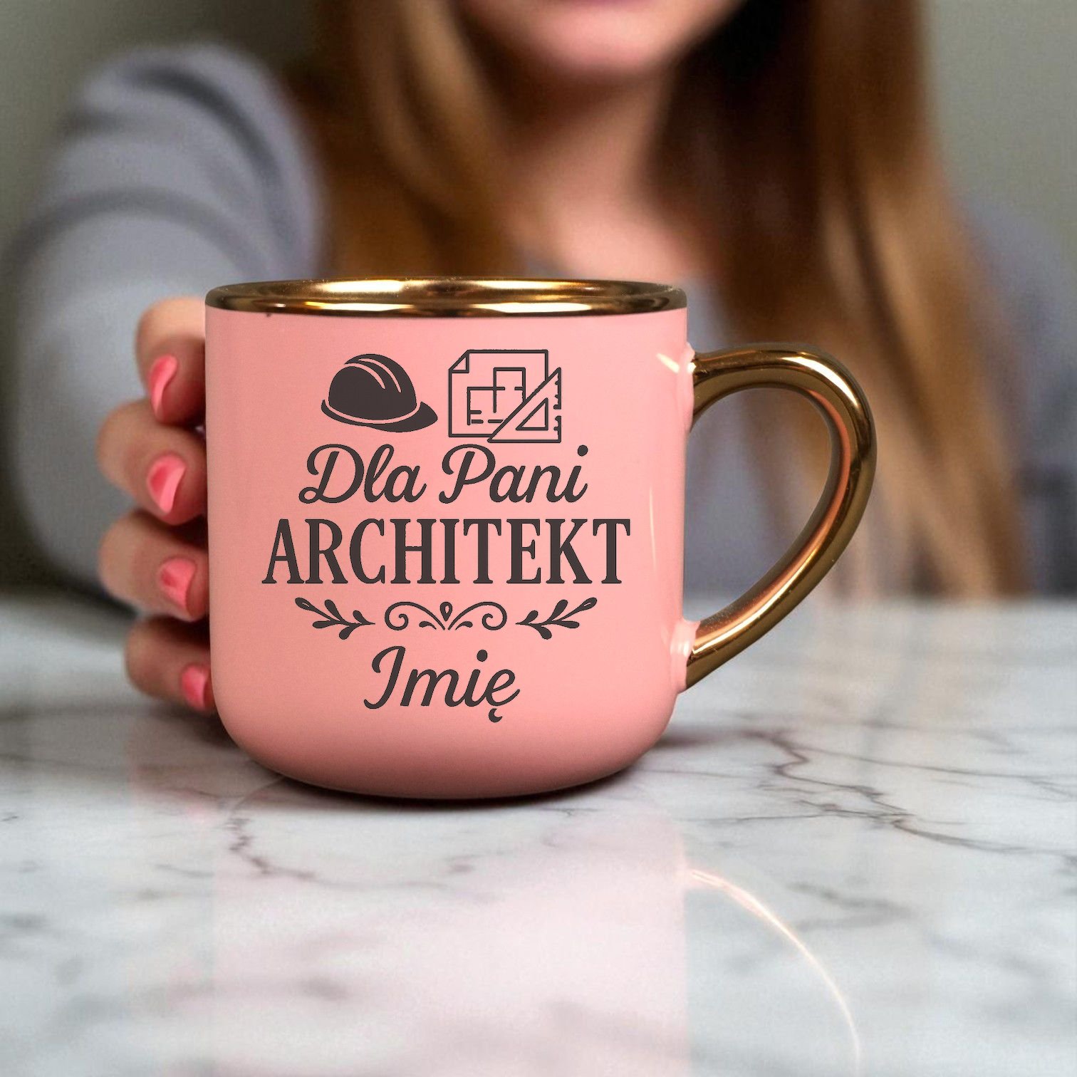 Kubek Personalizowany z Imieniem Róż + Łyżeczka i Podstawka Zestaw dla Pani Architekt v.1