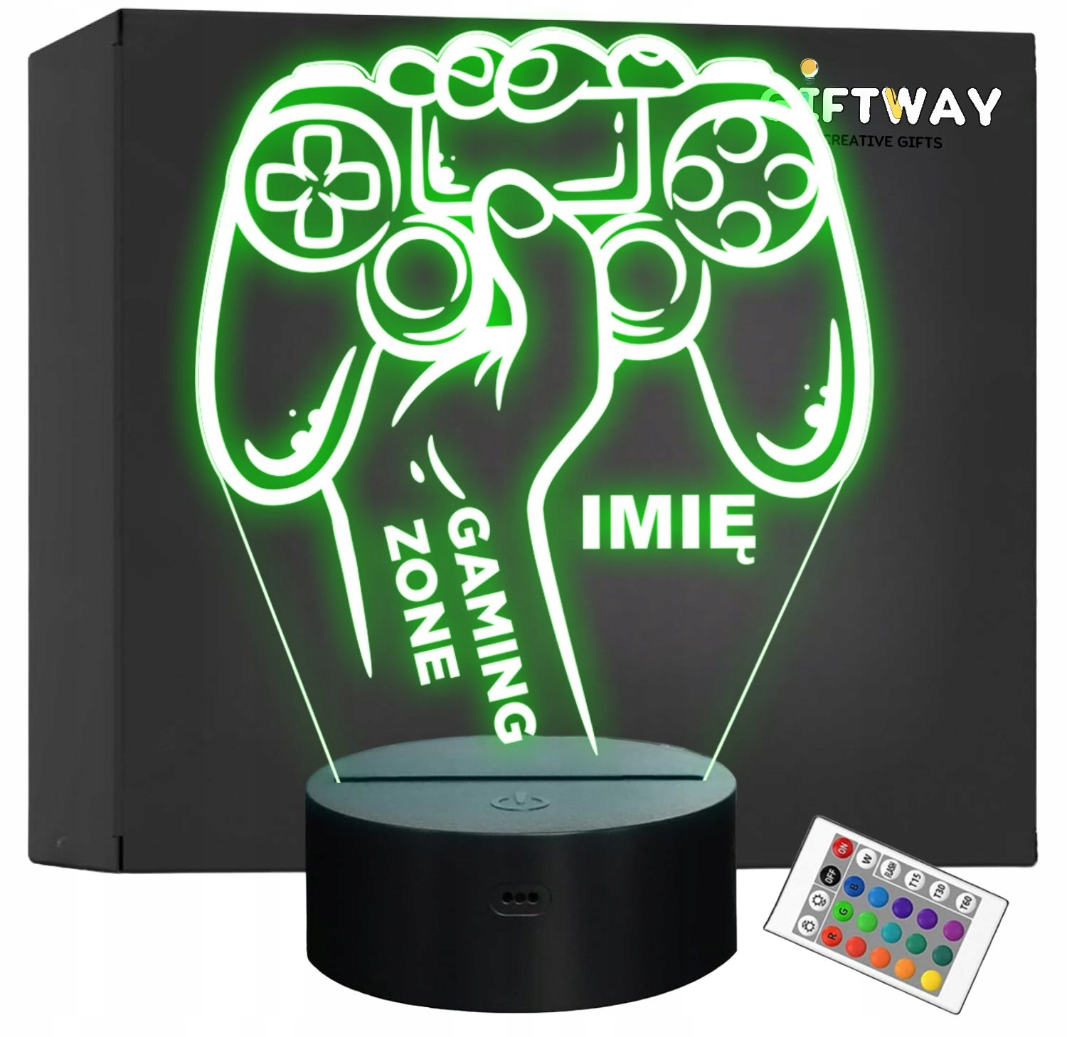 Nietypowa nocna lampka LED, która jest świetnym i kreatywnym pomysłem na prezent dla osoby lubiącej gry video. Ma kształt ręki trzymającej pada do gry. Na ręce widnieje napis „GAMING ZONE”. Lampka nadaje niepowtarzalnego klimatu, gdyż świeci w wielu kolorach!