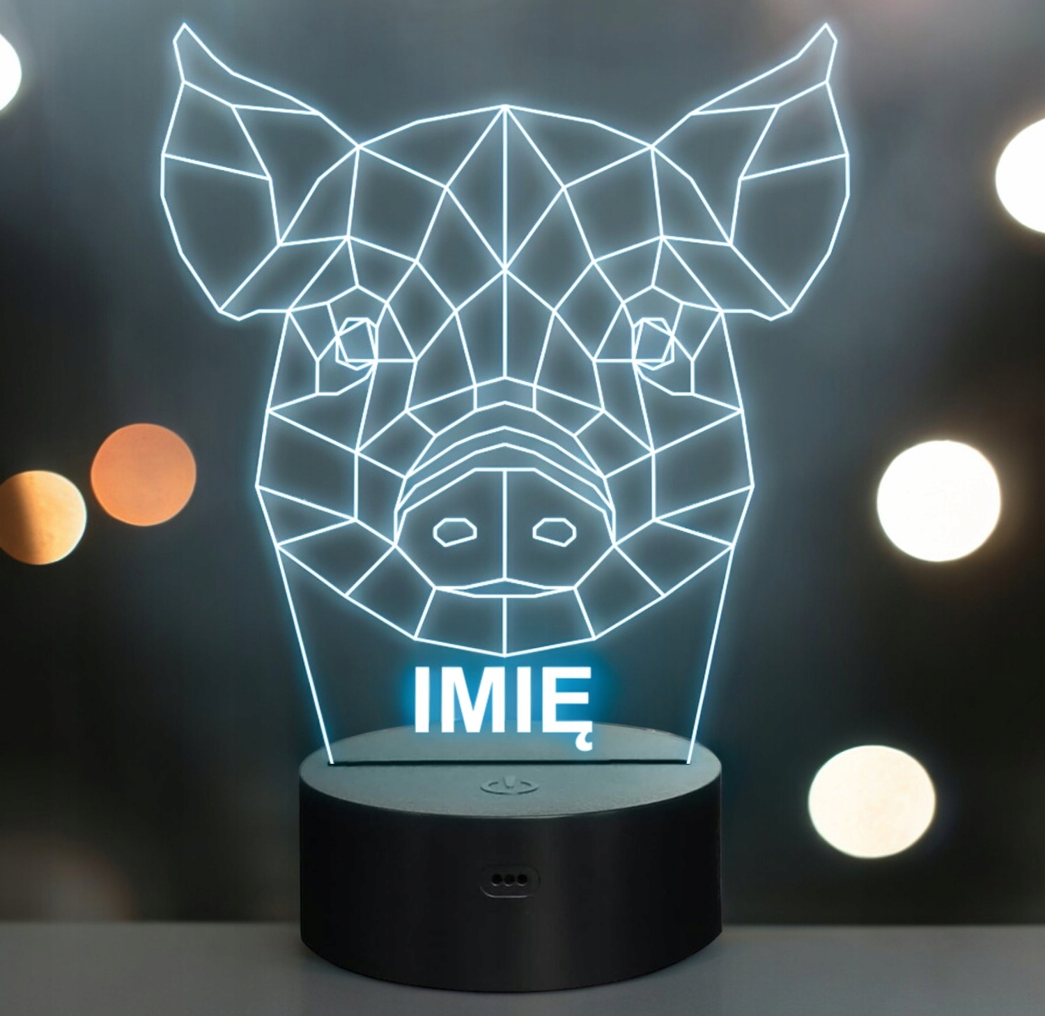 Lampka LED w Kształcie Świnki z Imieniem – Personalizowana na Prezent