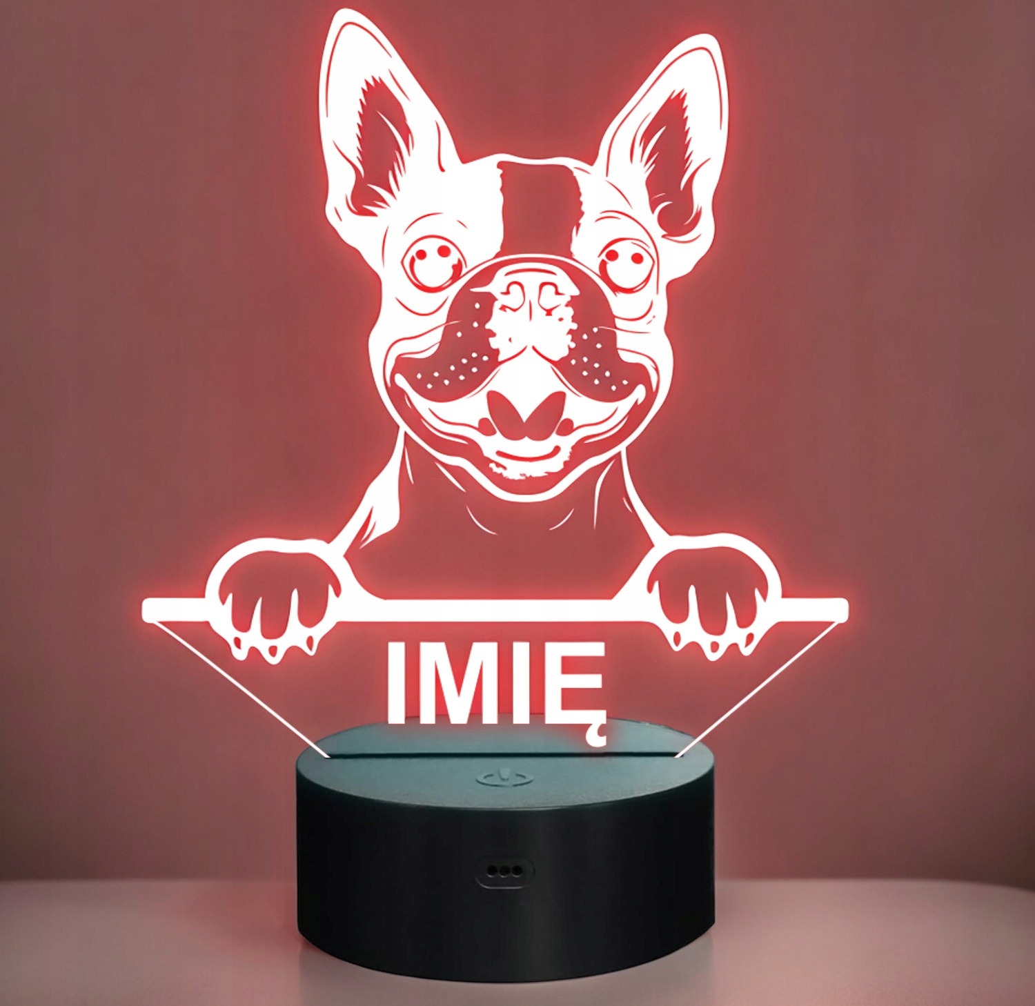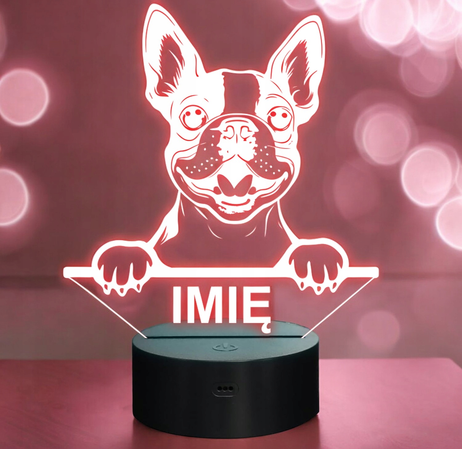 Nasza personalizowana lampka to idealny wybór dla fana lub posiadacza psa rasy Boston Terier. To również świetny pomysł na dekorację pokoju!