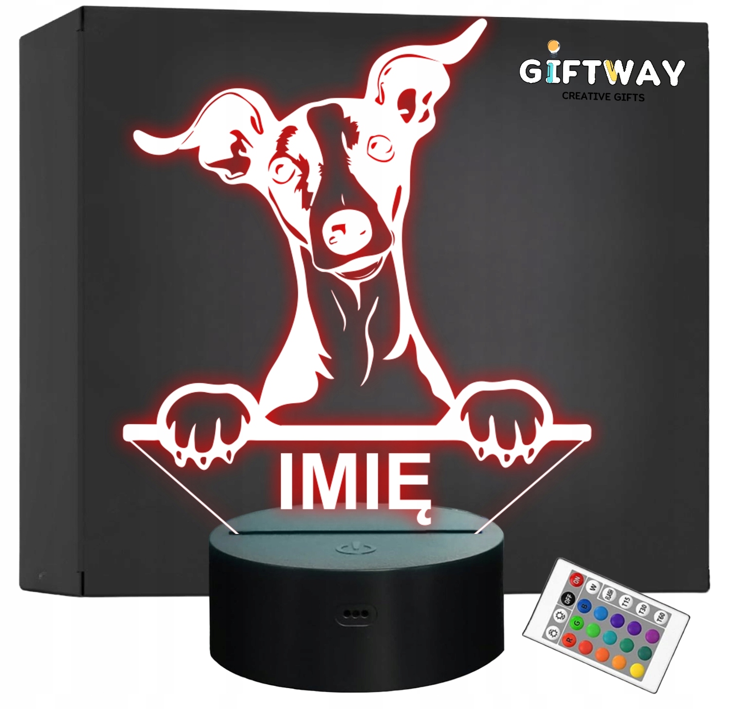 Nietypowa nocna lampka LED, która jest świetnym i kreatywnym pomysłem na prezent dla fana lub posiadacza psa rasy Charcik włoski. Lampka przypomina iluzję, co daje świetny efekt wizualny oraz nadaje niepowtarzalnego klimatu, gdyż świeci w wielu kolorach i trybach!