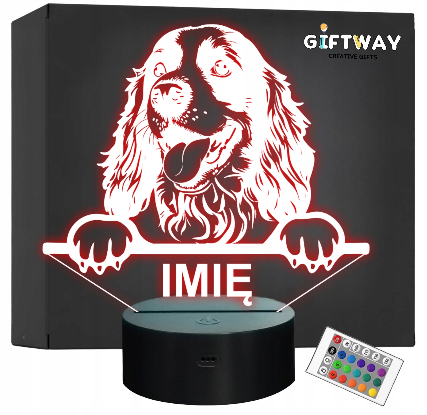 Nietypowa nocna lampka LED, która jest świetnym i kreatywnym pomysłem na prezent dla fana lub posiadacza psa rasy Cocker Spaniel. Lampka przypomina iluzję, co daje świetny efekt wizualny oraz nadaje niepowtarzalnego klimatu, gdyż świeci w wielu kolorach i trybach!