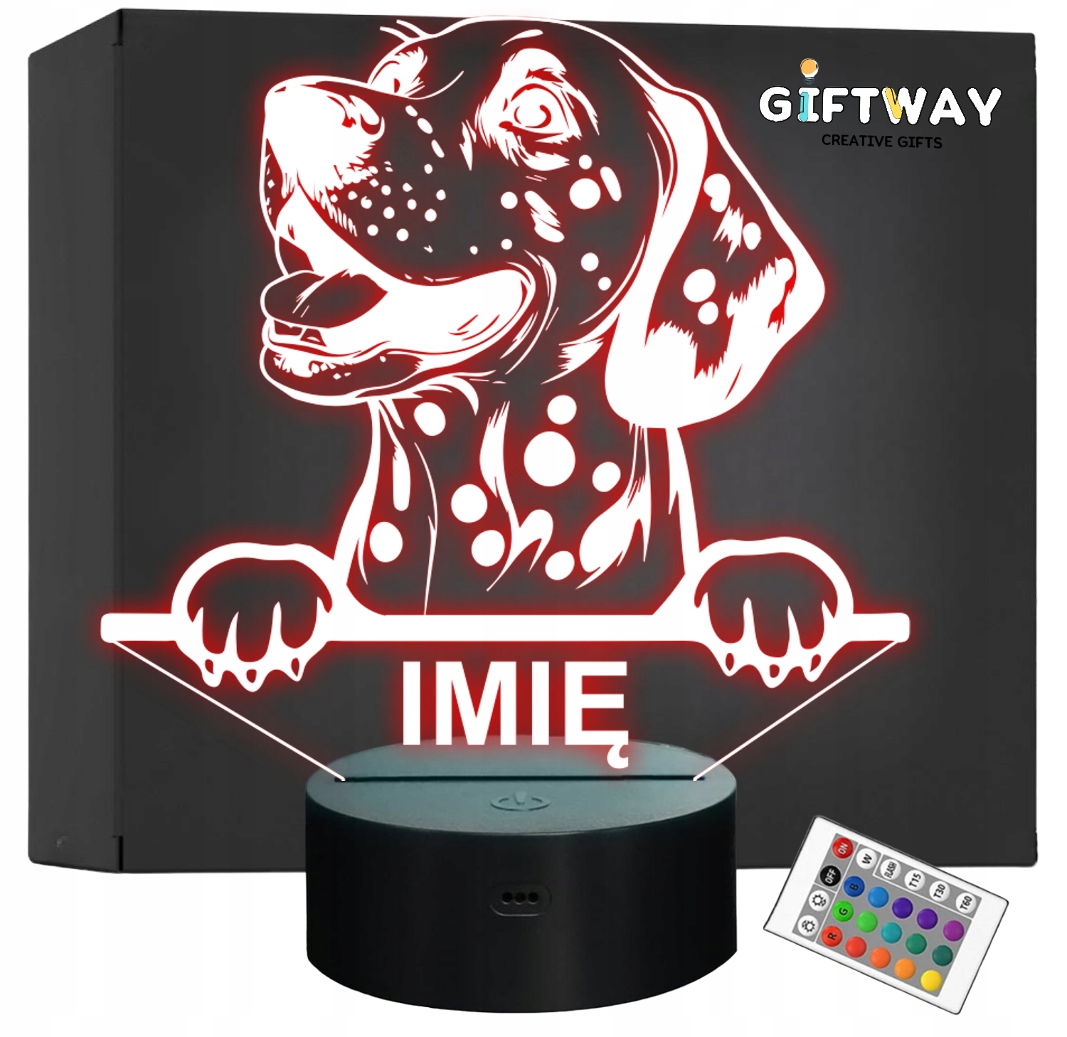Nietypowa nocna lampka LED, która jest świetnym i kreatywnym pomysłem na prezent dla fana lub posiadacza psa rasy Dalmatyńczyk. Lampka przypomina iluzję, co daje świetny efekt wizualny oraz nadaje niepowtarzalnego klimatu, gdyż świeci w wielu kolorach i trybach!