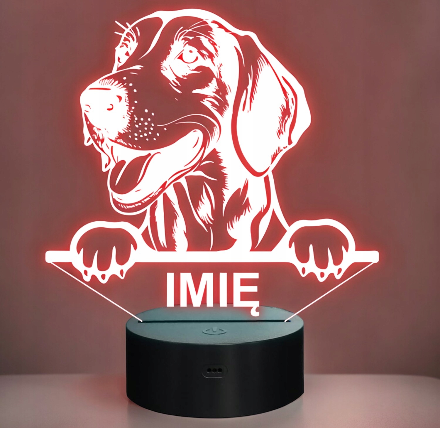 Nietypowa nocna lampka LED, która jest świetnym i kreatywnym pomysłem na prezent dla fana lub posiadacza psa rasy Foxhound. Lampka przypomina iluzję, co daje świetny efekt wizualny oraz nadaje niepowtarzalnego klimatu, gdyż świeci w wielu kolorach i trybach!