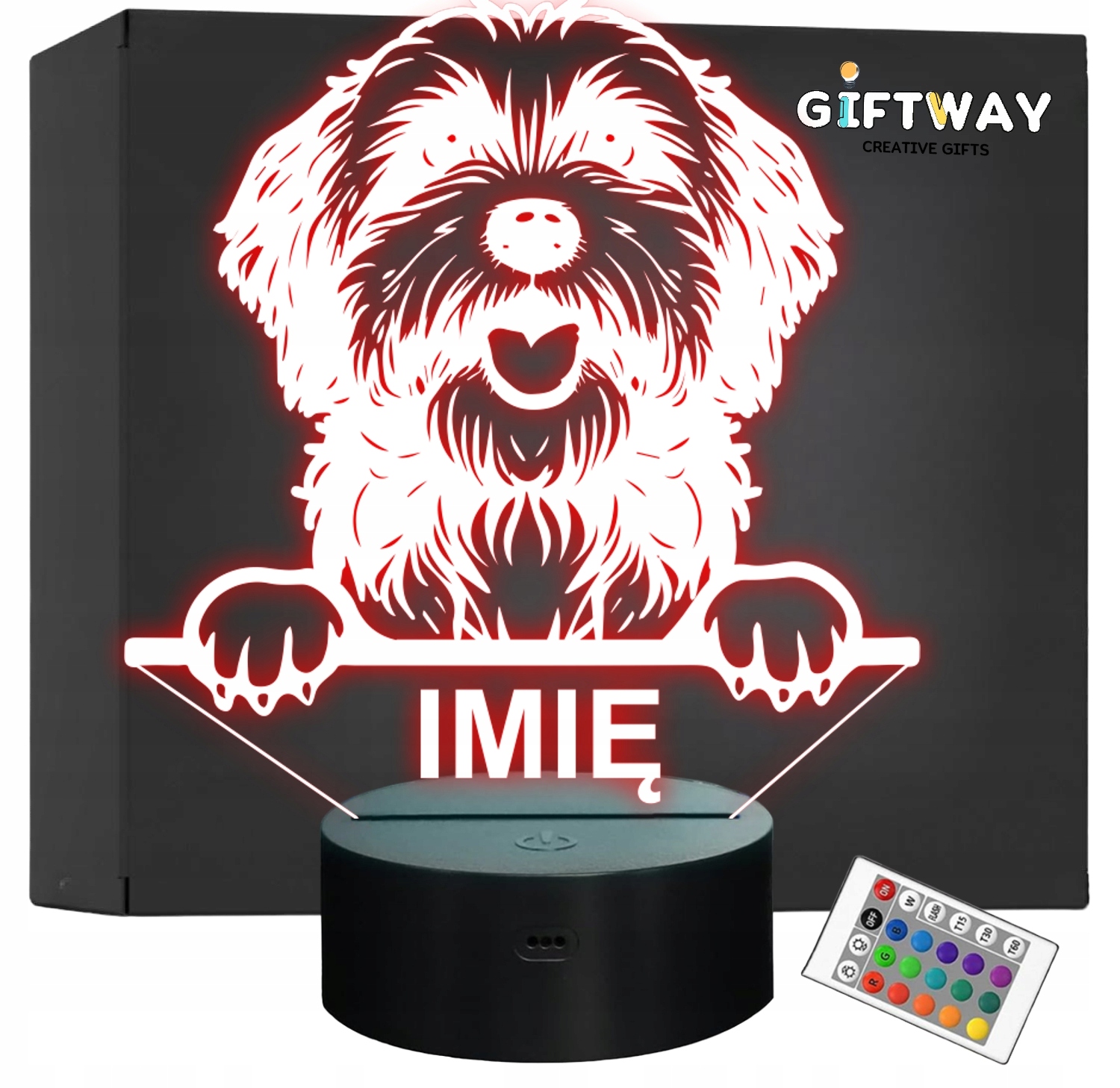 Nietypowa nocna lampka LED, która jest świetnym i kreatywnym pomysłem na prezent dla fana lub posiadacza psa rasy Hawańczyk. Lampka przypomina iluzję, co daje świetny efekt wizualny oraz nadaje niepowtarzalnego klimatu, gdyż świeci w wielu kolorach i trybach!