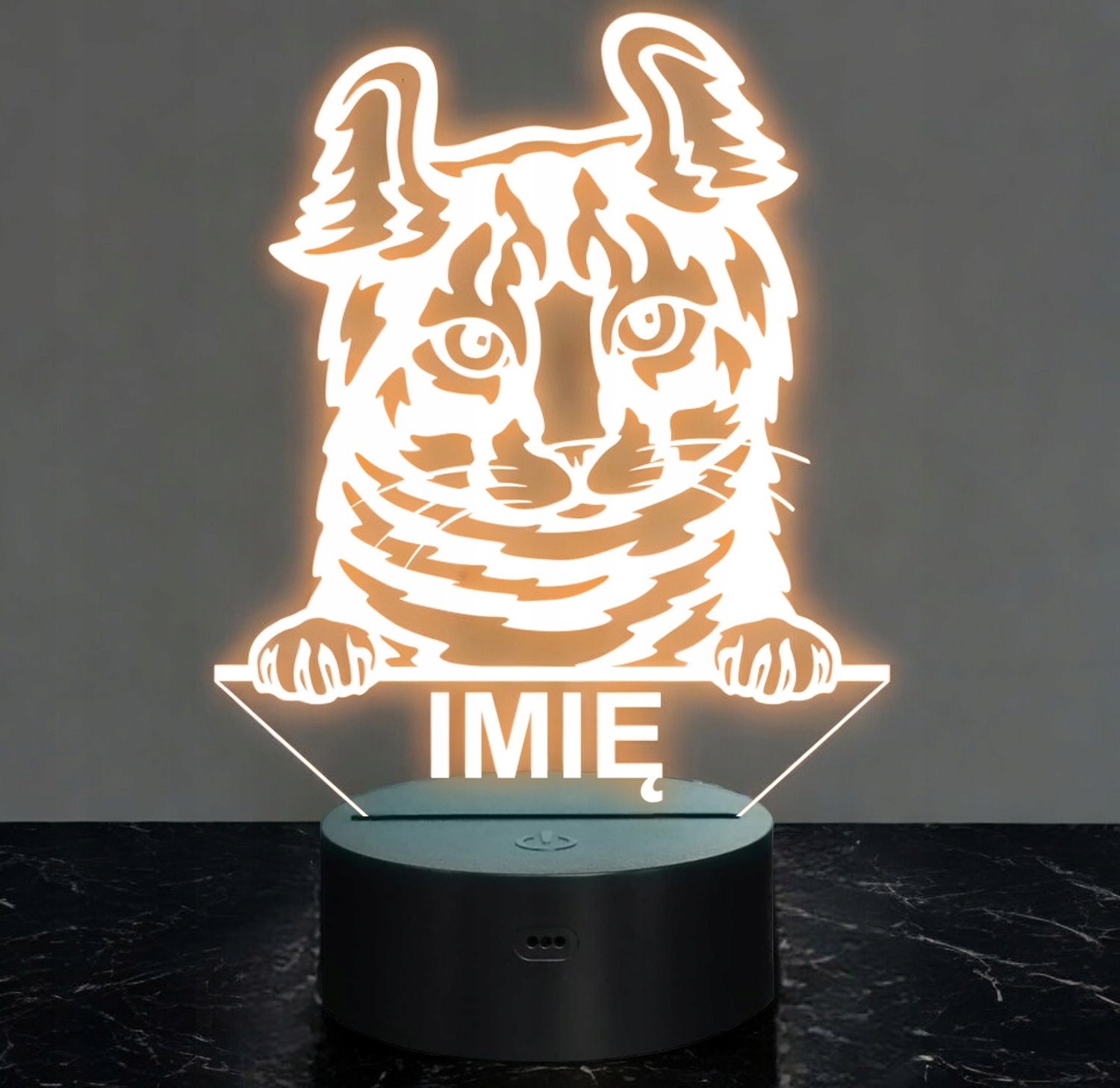 Nasza personalizowana lampka to idealny wybór dla fana lub posiadacza kota rasy Highlander. To również świetny pomysł na dekorację pokoju!