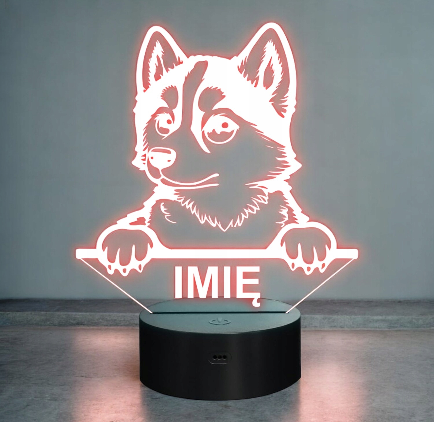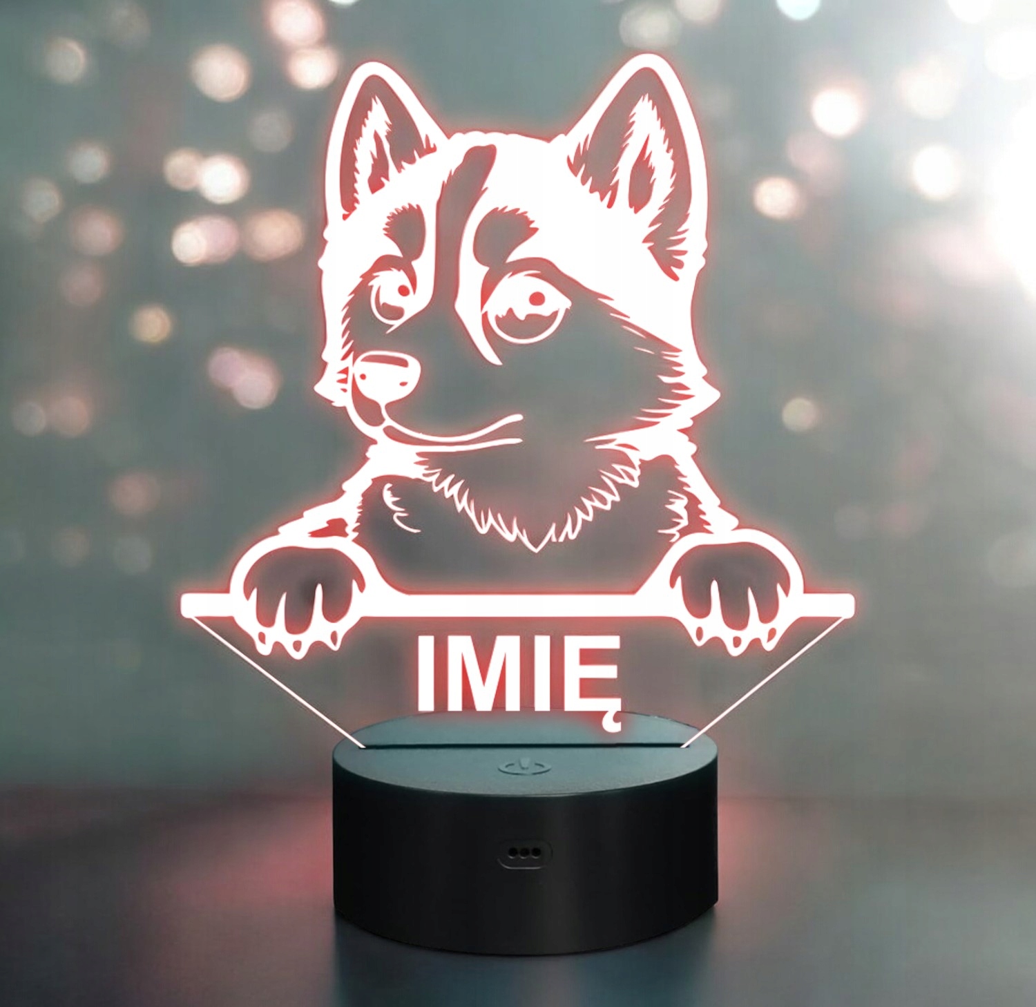 Nasza personalizowana lampka to idealny wybór dla fana lub posiadacza psa rasy Husky. To również świetny pomysł na dekorację pokoju!