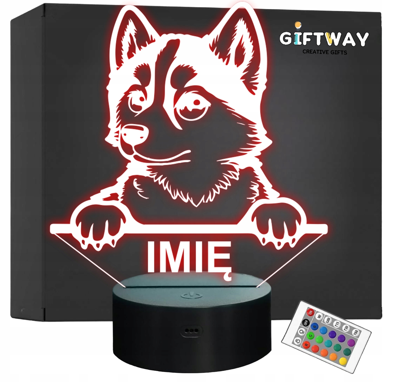 Nietypowa nocna lampka LED, która jest świetnym i kreatywnym pomysłem na prezent dla fana lub posiadacza psa rasy Husky. Lampka przypomina iluzję, co daje świetny efekt wizualny oraz nadaje niepowtarzalnego klimatu, gdyż świeci w wielu kolorach i trybach!