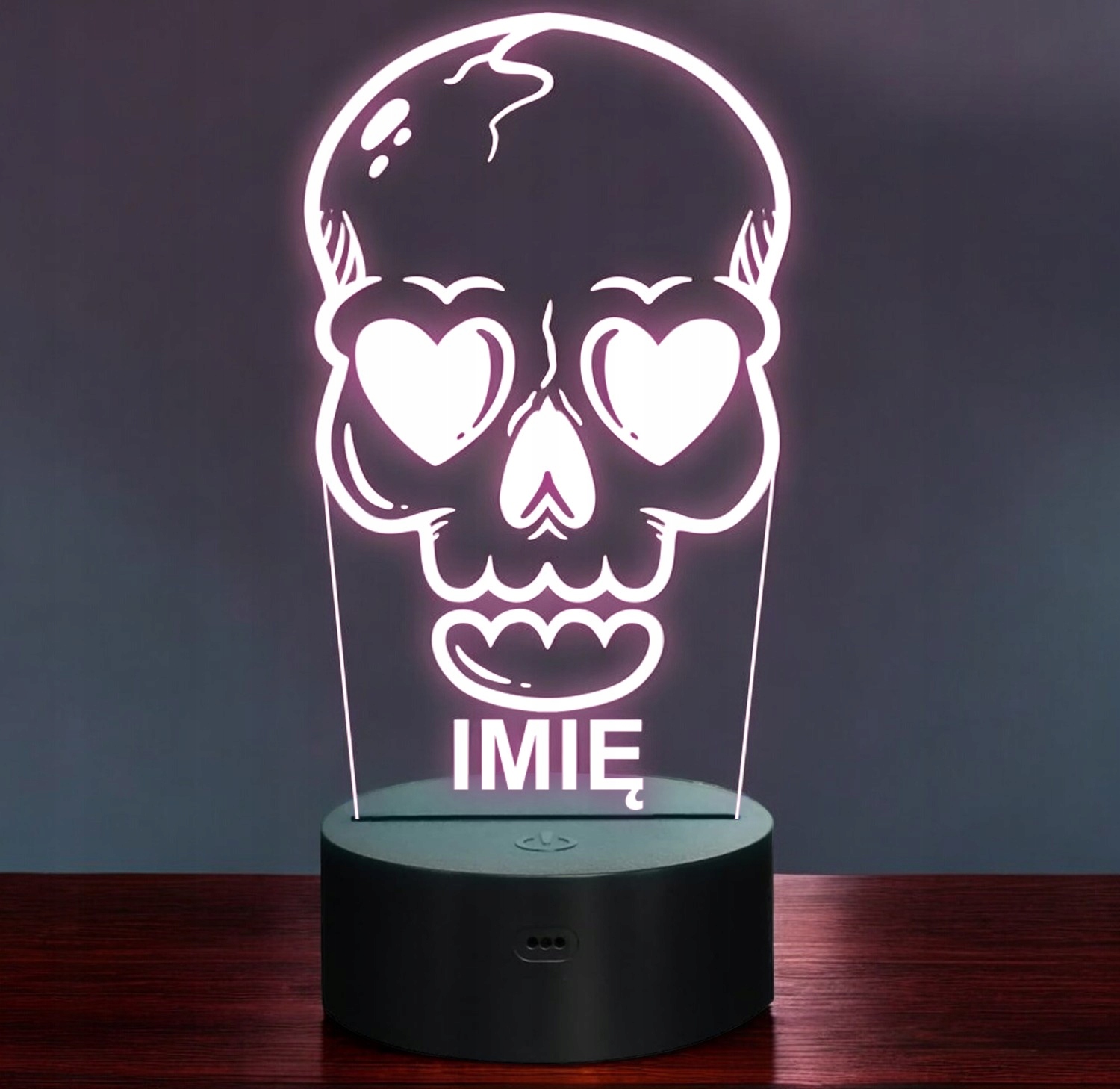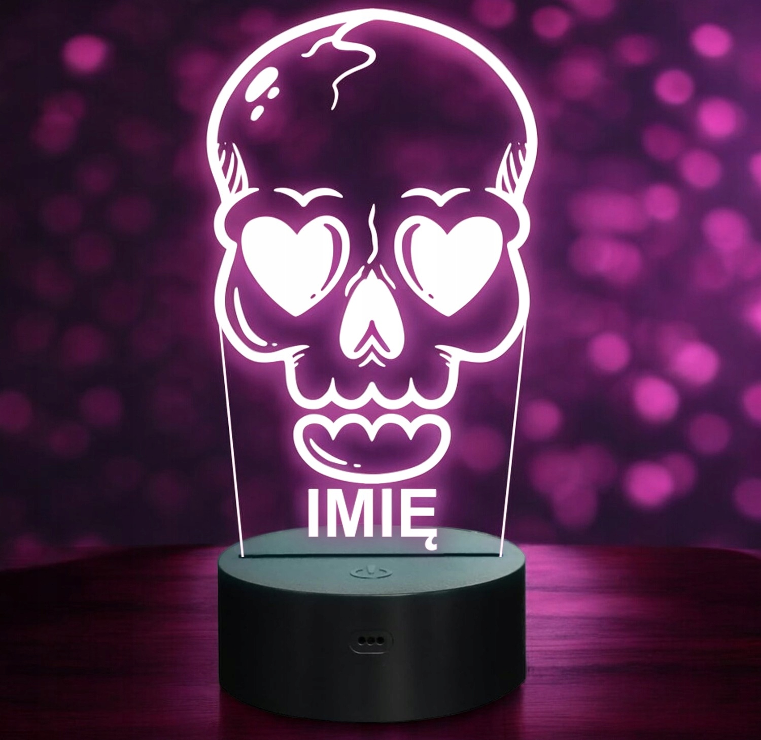 Lampka LED Personalizowana na Prezent – Czaszka z Sercami