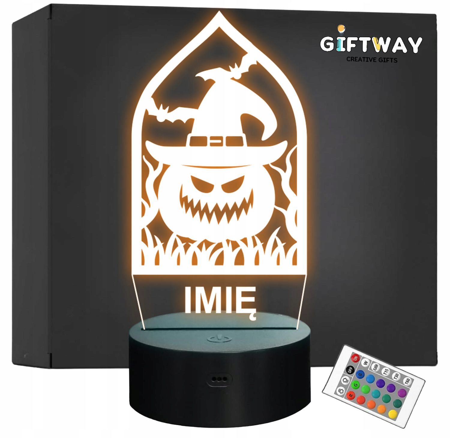 Lampka LED Personalizowana na Prezent – Dynia Czarownica Halloween
