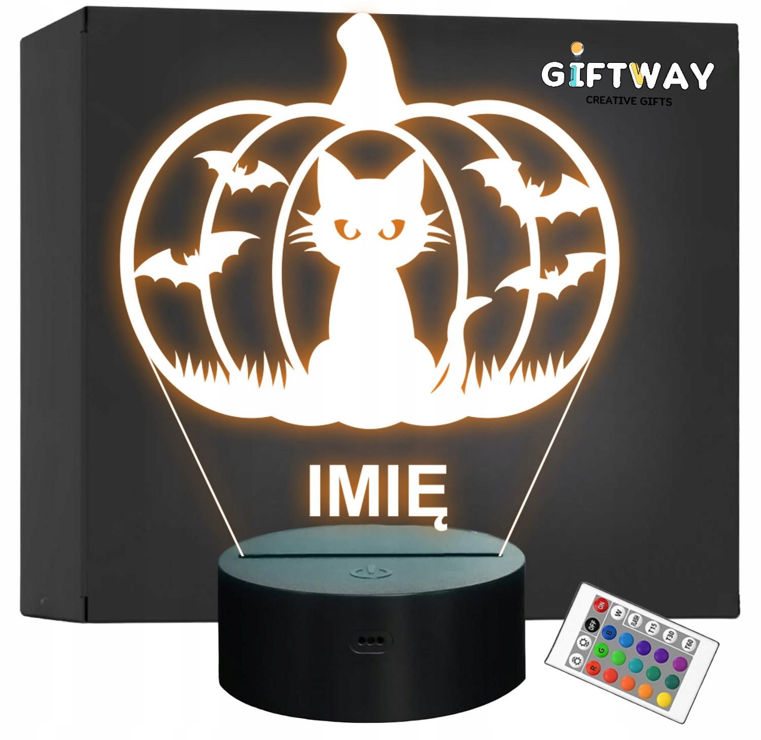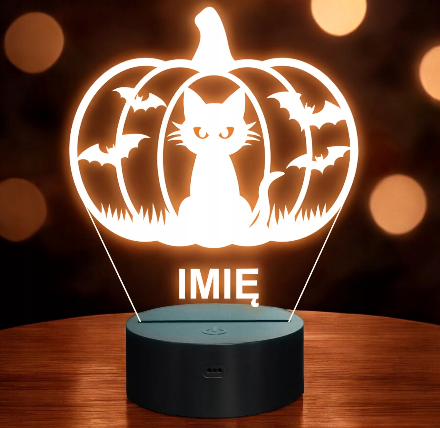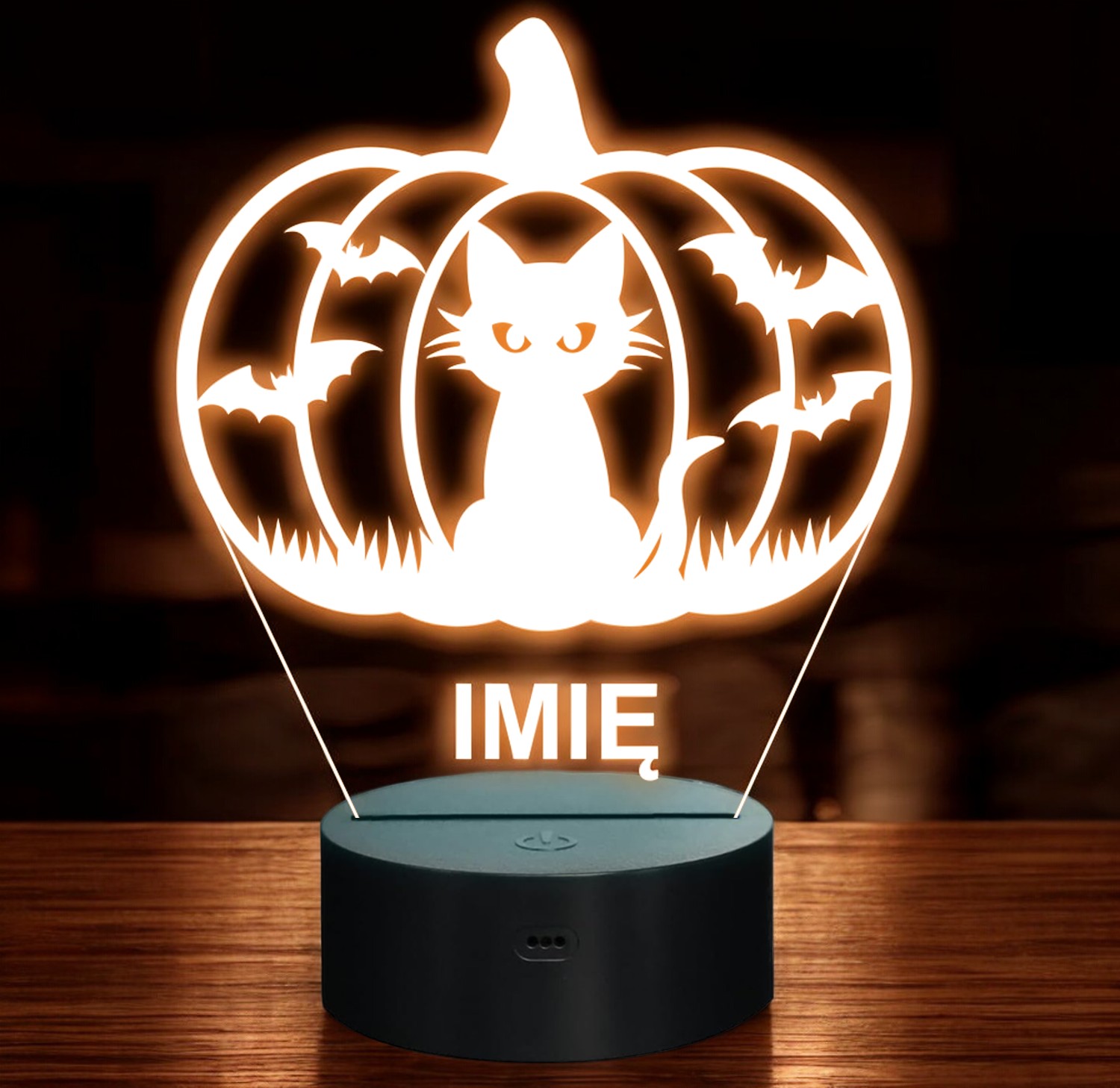 Lampka LED Personalizowana na Prezent – Dynia z Kotem Halloween