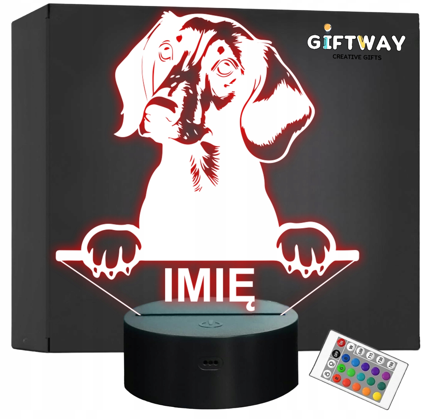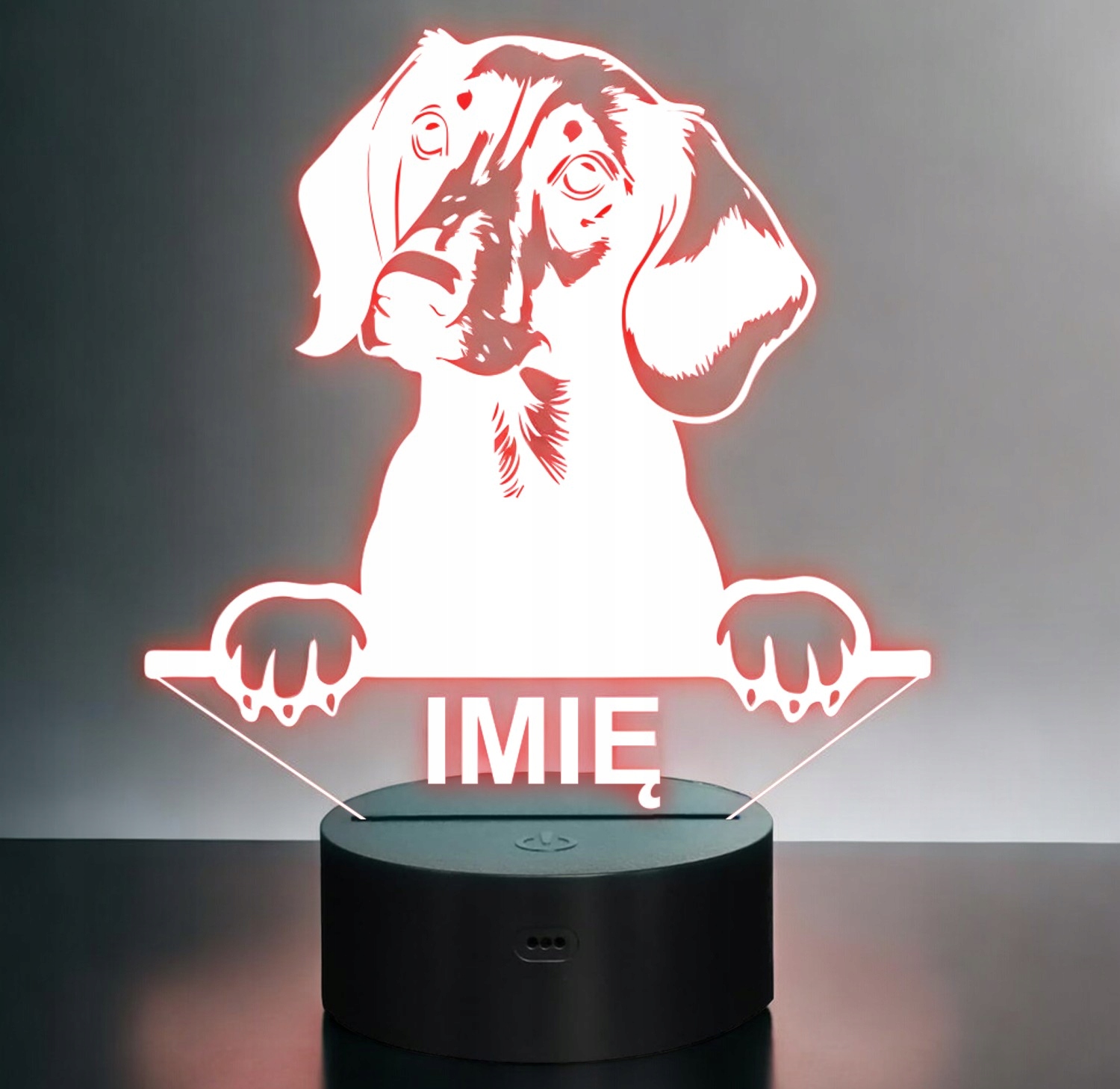 Nietypowa nocna lampka LED, która jest świetnym i kreatywnym pomysłem na prezent dla fana lub posiadacza psa rasy Jamnik. Lampka przypomina iluzję, co daje świetny efekt wizualny oraz nadaje niepowtarzalnego klimatu, gdyż świeci w wielu kolorach i trybach!