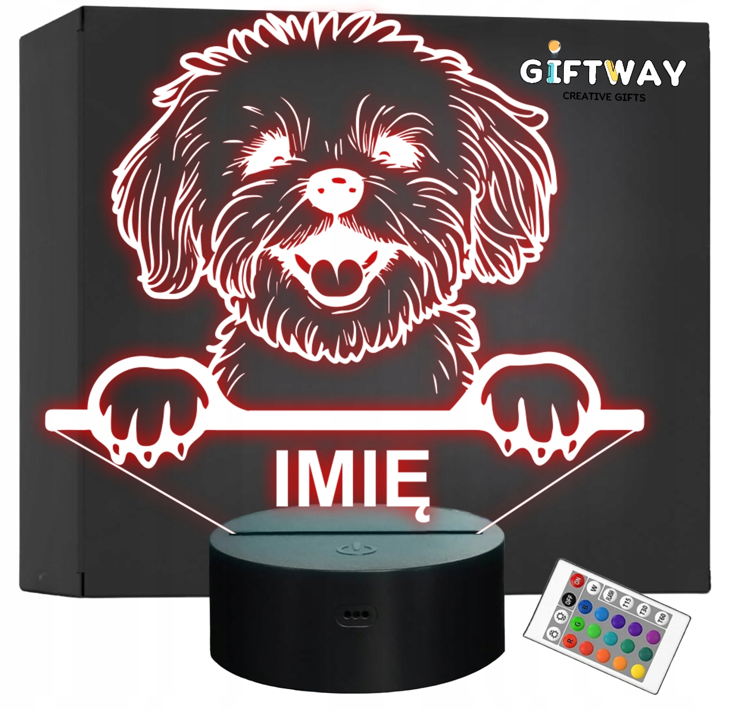 Nietypowa nocna lampka LED, która jest świetnym i kreatywnym pomysłem na prezent dla fana lub posiadacza psa rasy Maltańczyk. Lampka przypomina iluzję, co daje świetny efekt wizualny oraz nadaje niepowtarzalnego klimatu, gdyż świeci w wielu kolorach i trybach!