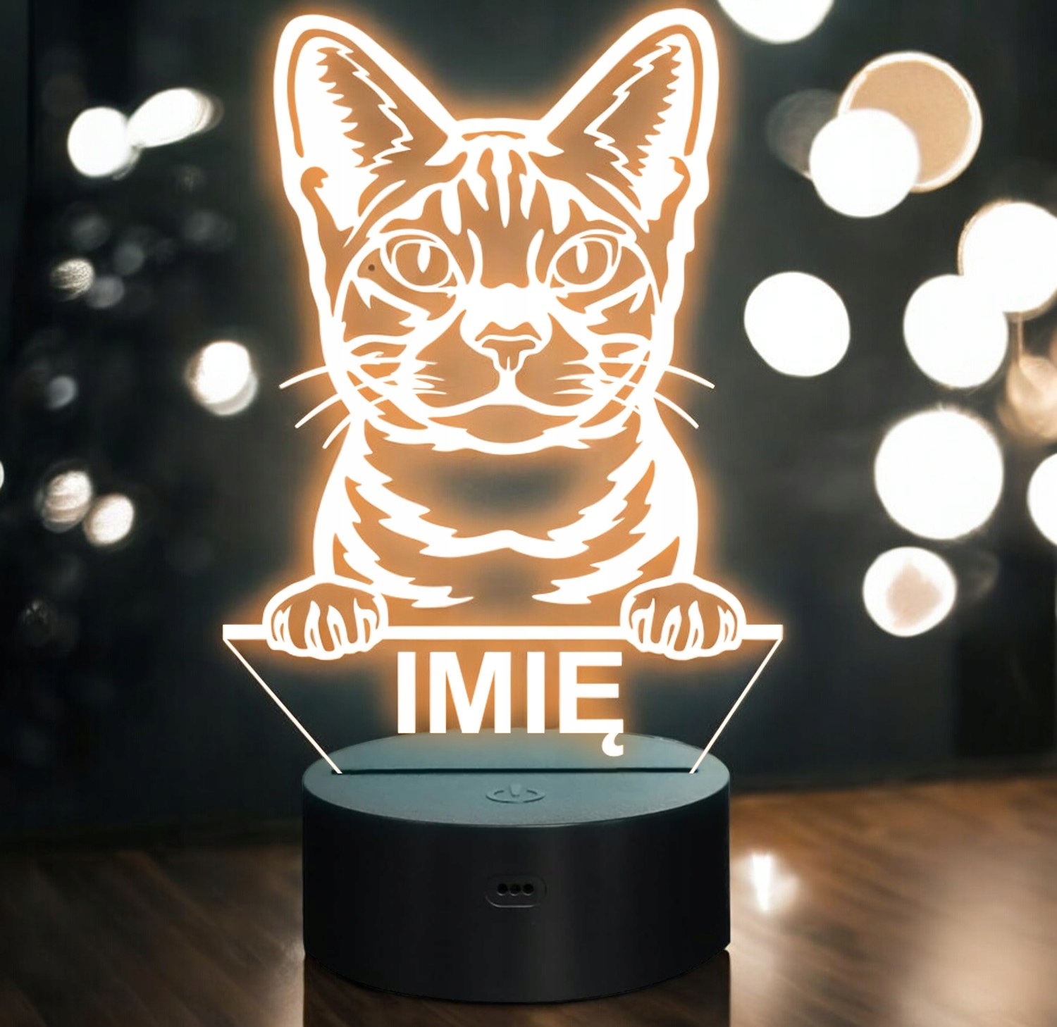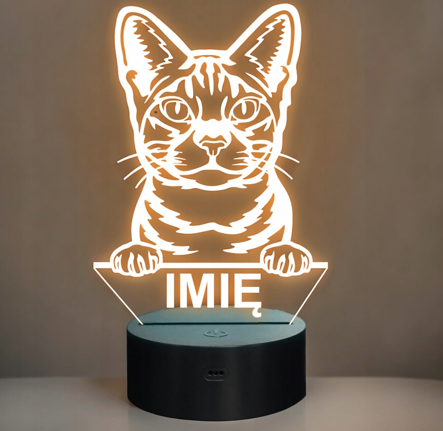 Nasza personalizowana lampka to idealny wybór dla fana lub posiadacza kota rasy Ocicat. To również świetny pomysł na dekorację pokoju!