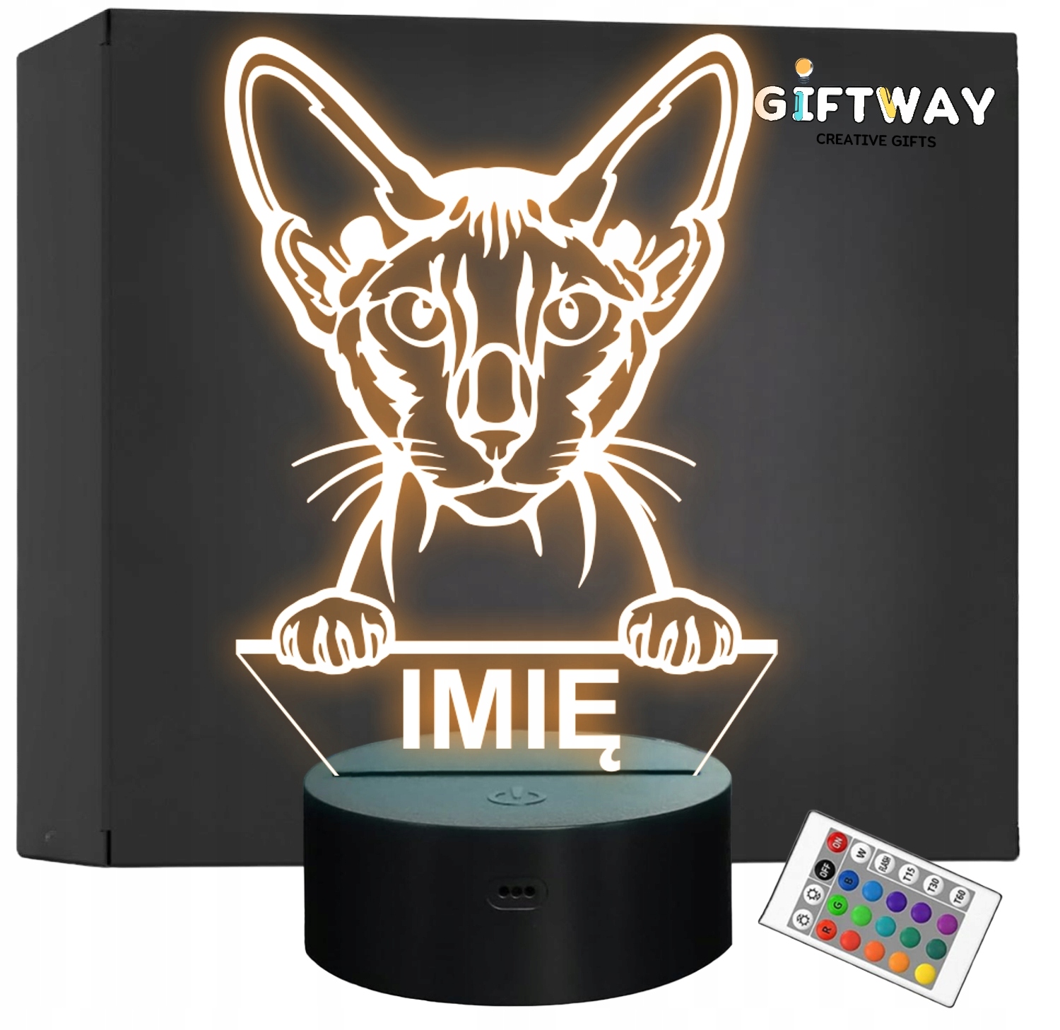 Nasza personalizowana lampka to idealny wybór dla fana lub posiadacza kota rasy Peterbald. To również świetny pomysł na dekorację pokoju!