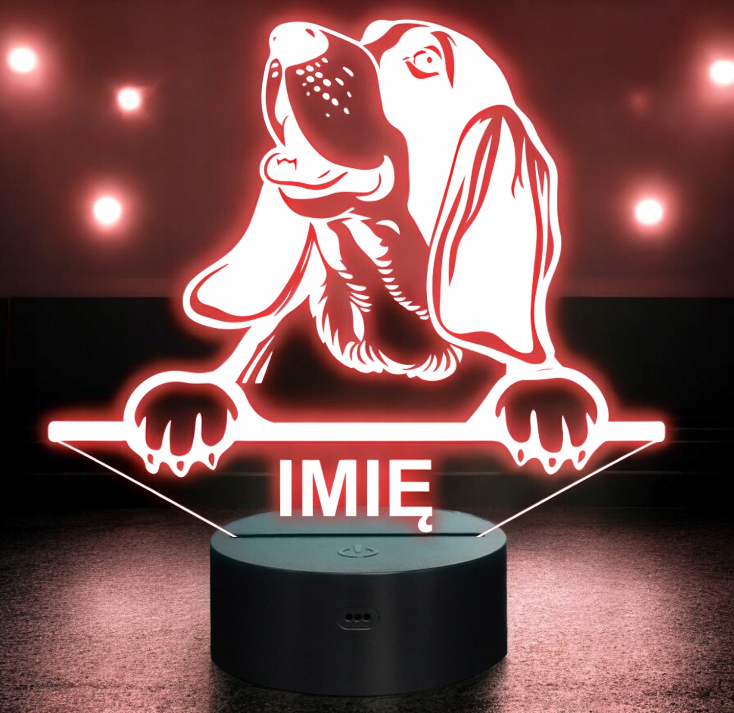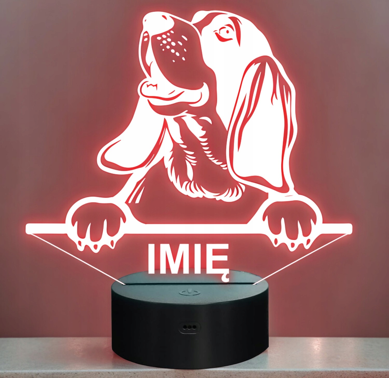 Nasza personalizowana lampka to idealny wybór dla fana lub posiadacza psa rasy Basset Hound. To również świetny pomysł na dekorację pokoju!
