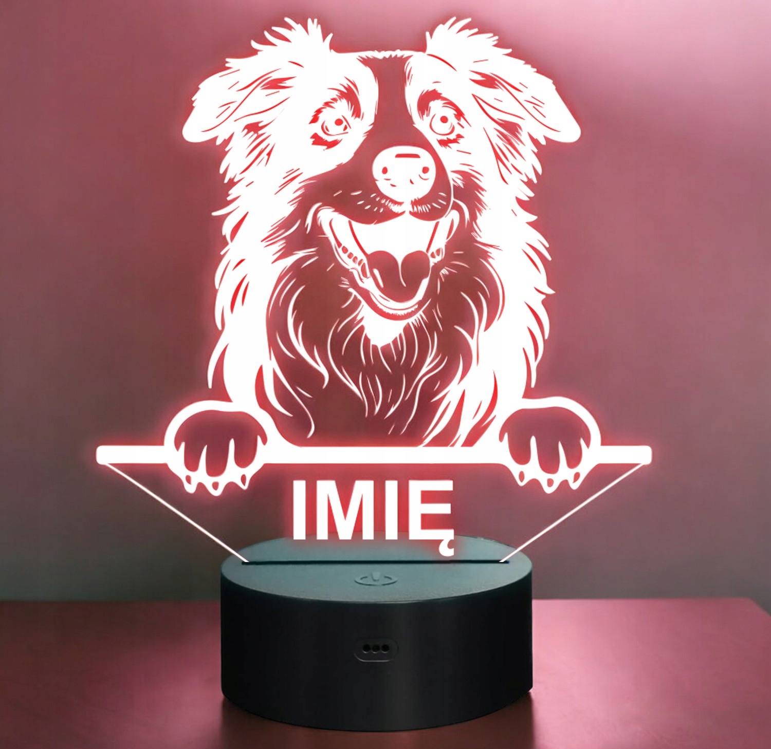Nietypowa nocna lampka LED, która jest świetnym i kreatywnym pomysłem na prezent dla fana lub posiadacza psa rasy Australian Shepherd. Lampka przypomina iluzję, co daje świetny efekt wizualny oraz nadaje niepowtarzalnego klimatu, gdyż świeci w wielu kolorach i trybach!