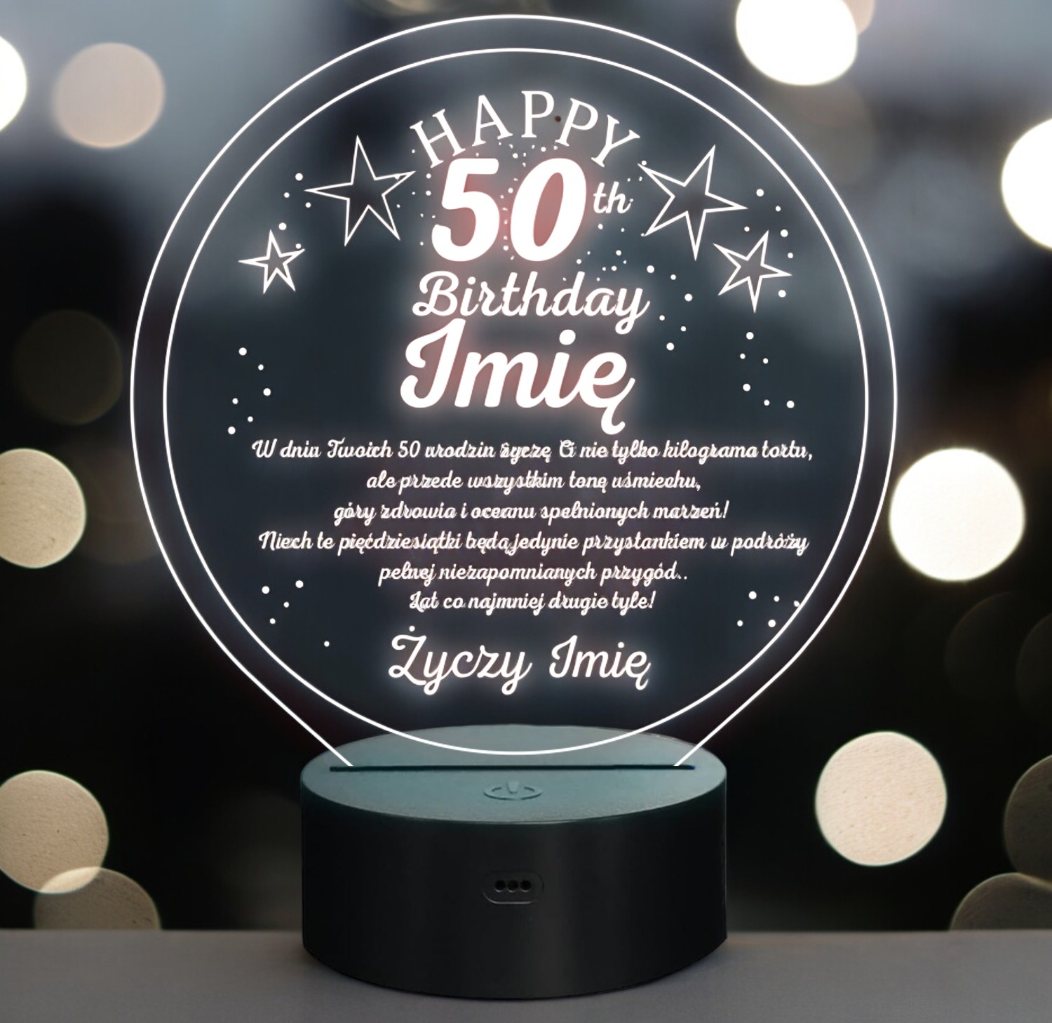 Lampka LED – Personalizowana na Prezent z Okazji Pięćdziesiątych Urodzin
