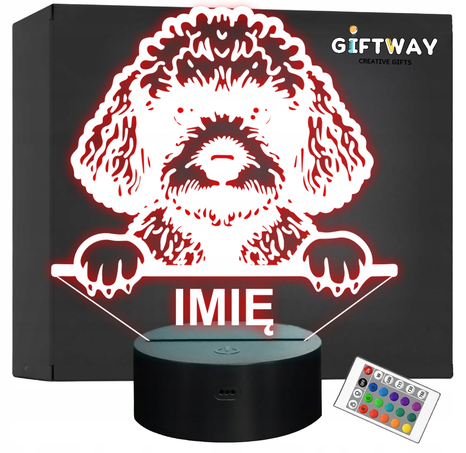 Nietypowa nocna lampka LED, która jest świetnym i kreatywnym pomysłem na prezent dla fana lub posiadacza psa rasy Pudel. Lampka przypomina iluzję, co daje świetny efekt wizualny oraz nadaje niepowtarzalnego klimatu, gdyż świeci w wielu kolorach i trybach!