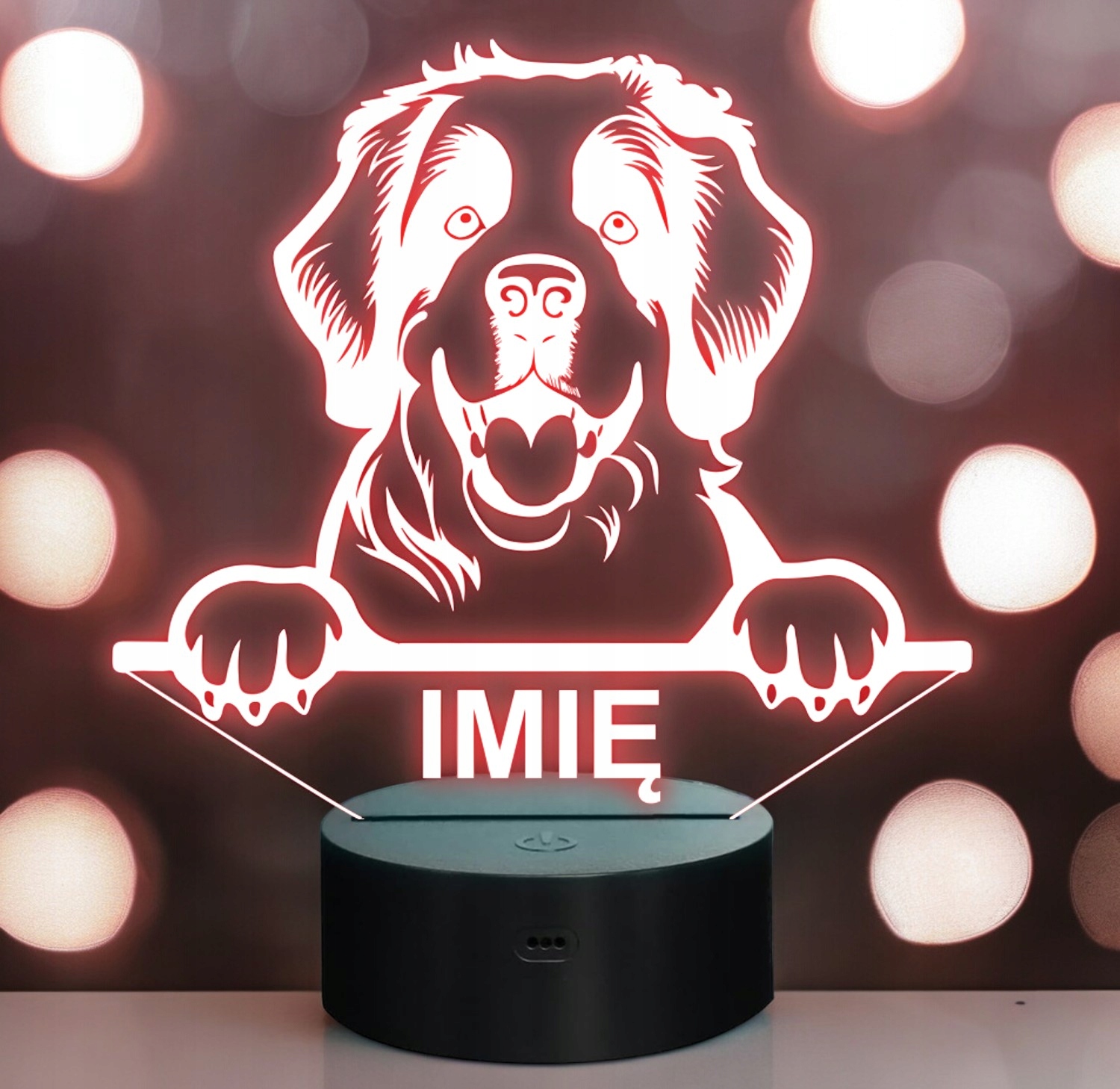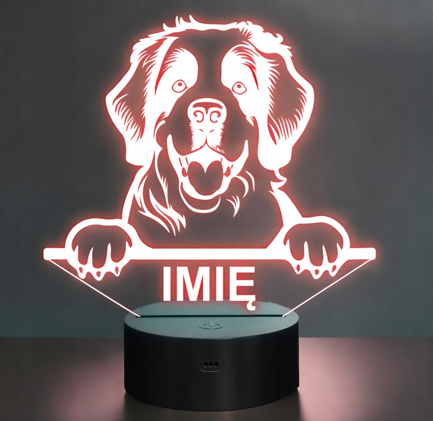Nasza personalizowana lampka to idealny wybór dla fana lub posiadacza psa rasy Saint bernard. To również świetny pomysł na dekorację pokoju!