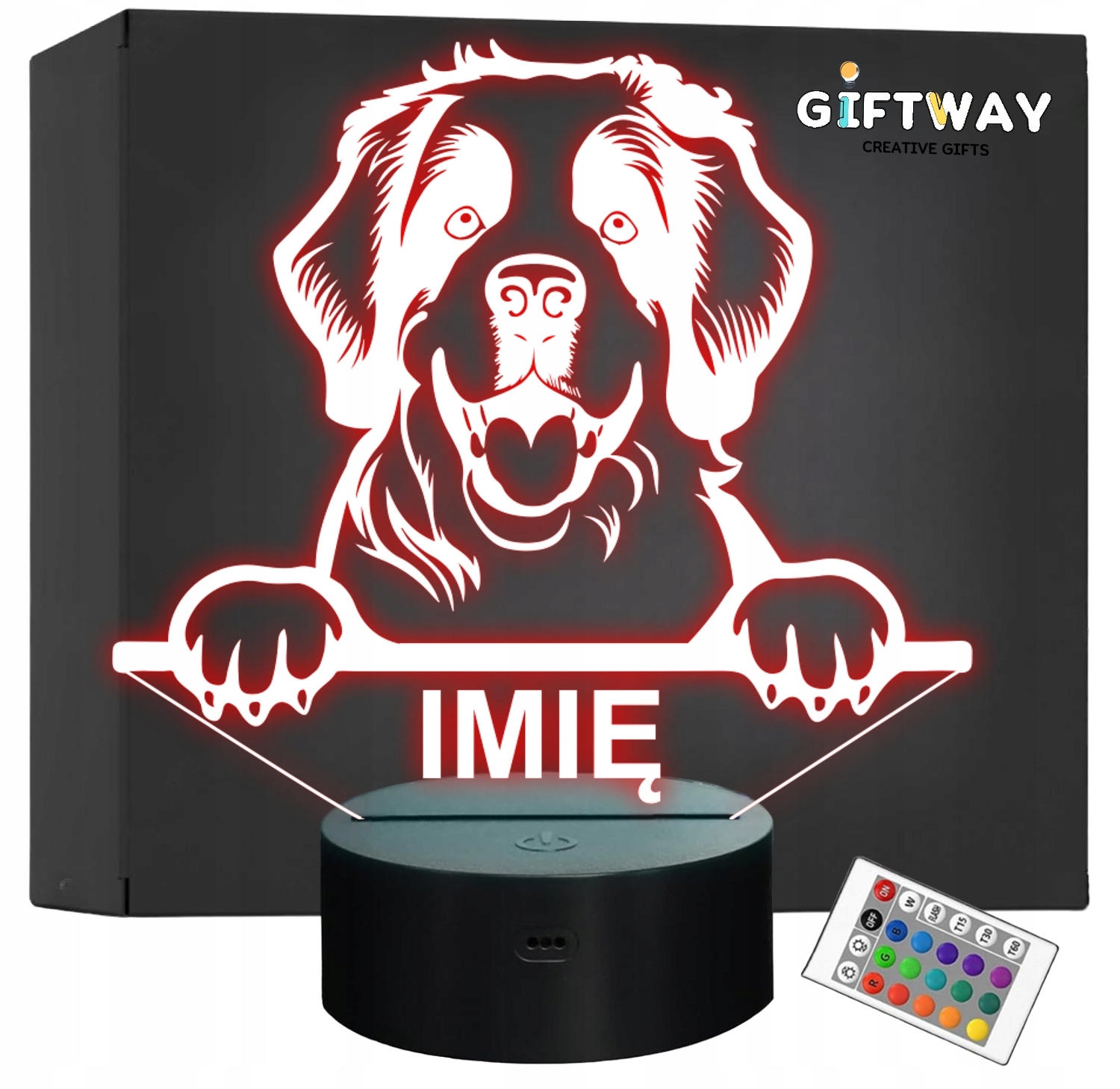Nietypowa nocna lampka LED, która jest świetnym i kreatywnym pomysłem na prezent dla fana lub posiadacza psa rasy Saint bernard. Lampka przypomina iluzję, co daje świetny efekt wizualny oraz nadaje niepowtarzalnego klimatu, gdyż świeci w wielu kolorach i trybach!