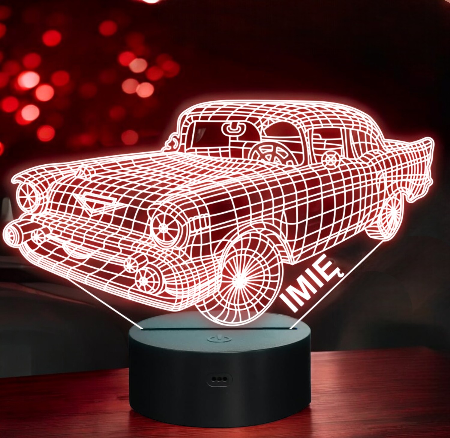 Nasza personalizowana lampka to idealny wybór dla fana motoryzacji, a szczególnie samochodów retro. To również świetny pomysł na dekorację pokoju!