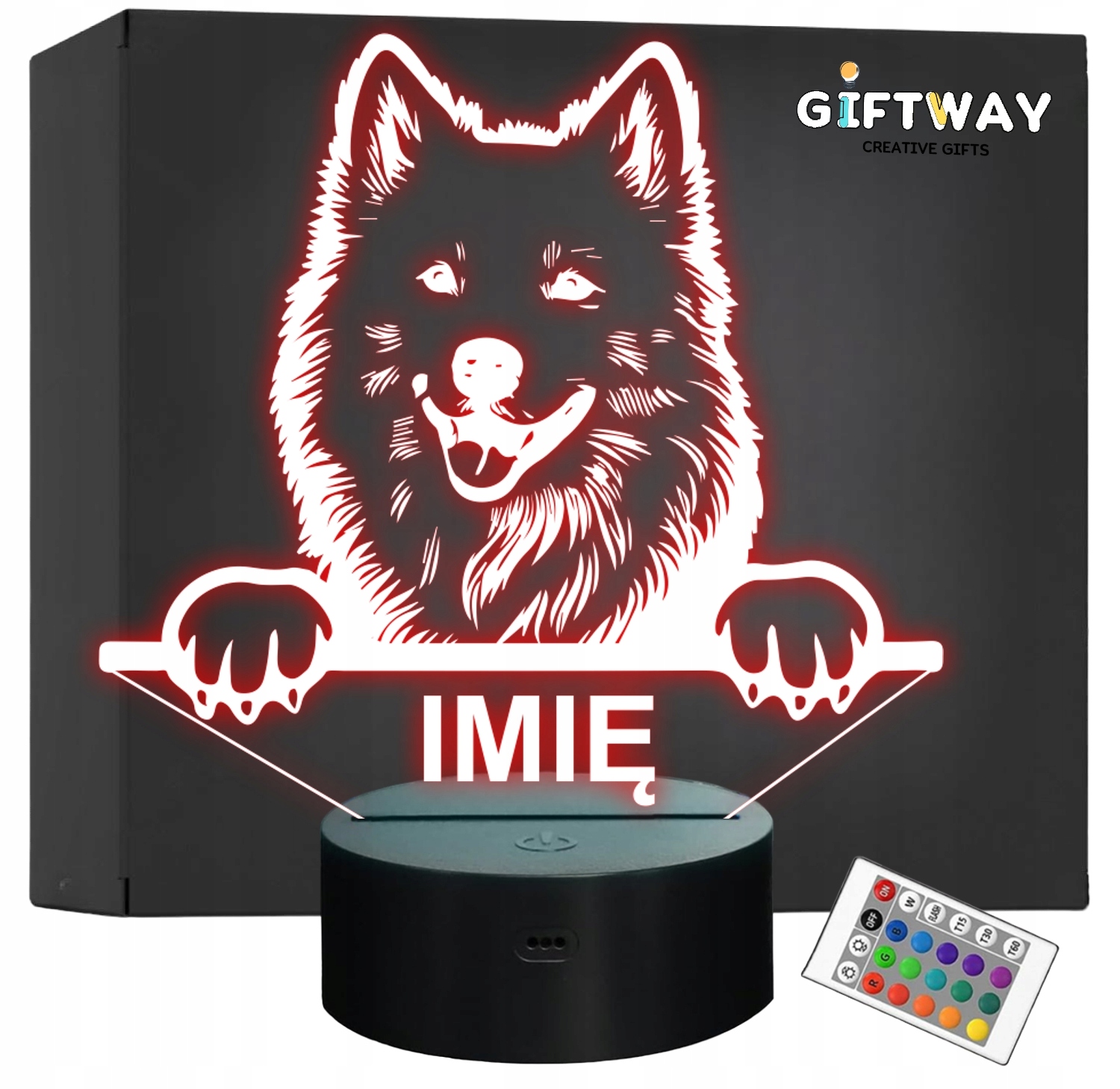 Nietypowa nocna lampka LED, która jest świetnym i kreatywnym pomysłem na prezent dla fana lub posiadacza psa rasy Samoyed. Lampka przypomina iluzję, co daje świetny efekt wizualny oraz nadaje niepowtarzalnego klimatu, gdyż świeci w wielu kolorach i trybach!
