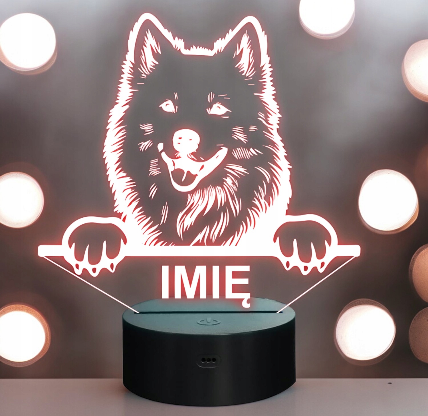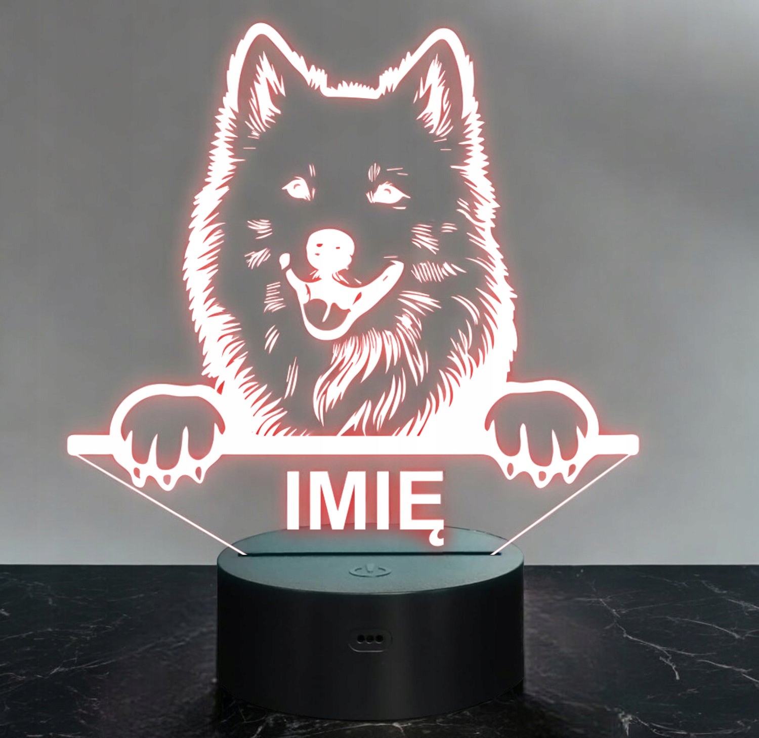 Nasza personalizowana lampka to idealny wybór dla fana lub posiadacza psa rasy Samoyed. To również świetny pomysł na dekorację pokoju!