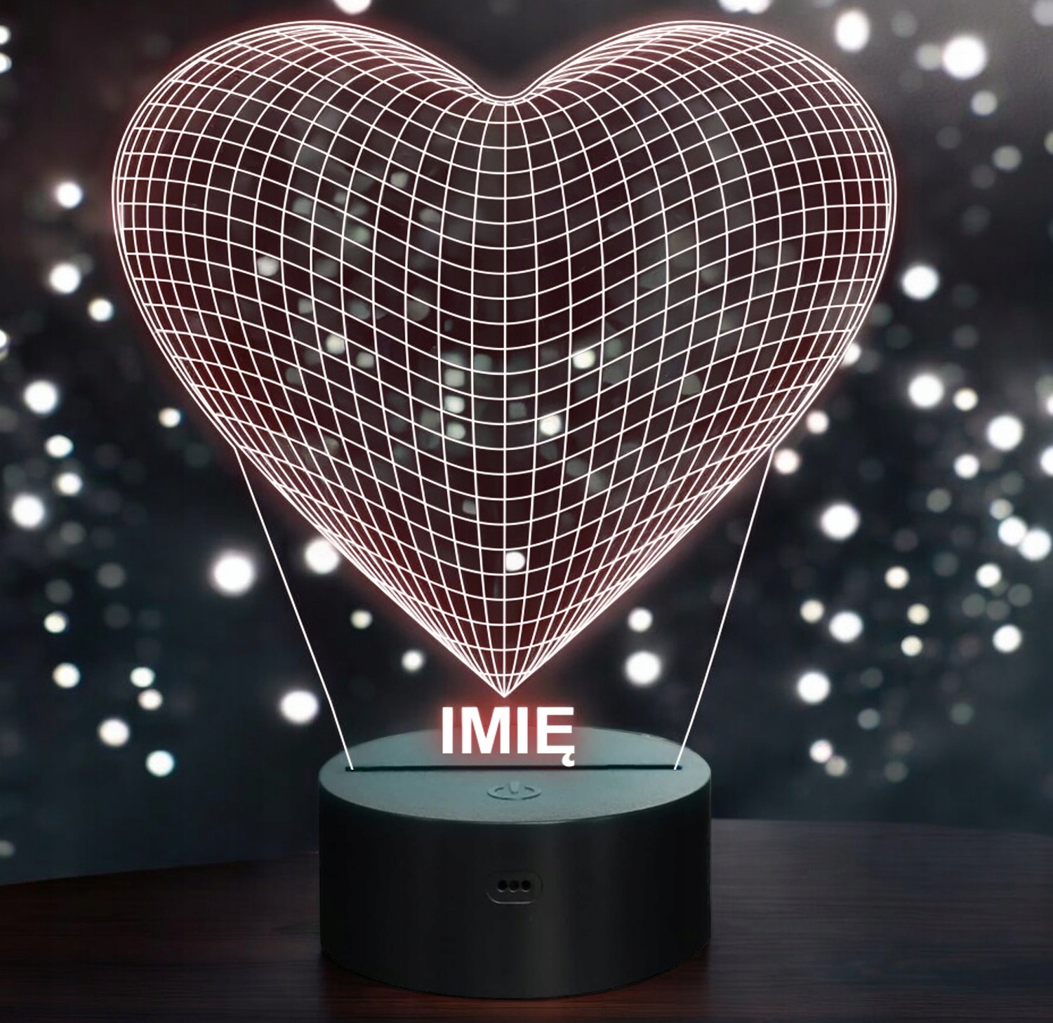 Nietypowa nocna lampka LED, która jest świetnym i kreatywnym pomysłem na prezent dla drugiej połowki. Ma kształt serca które ma efekt iluzji 3D. Lampka nadaje niepowtarzalnego klimatu, gdyż świeci w wielu kolorach i trybach!