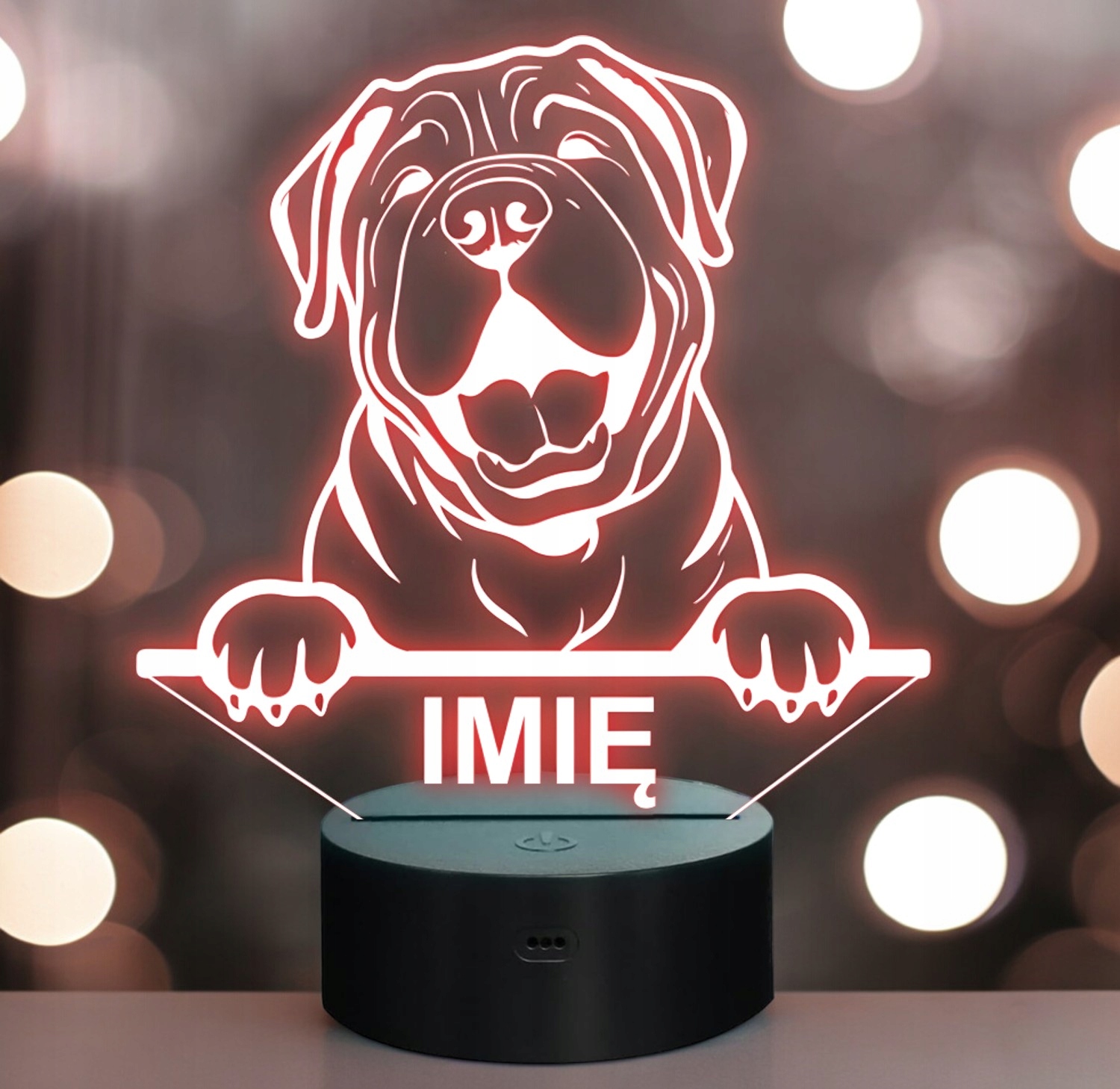 Nasza personalizowana lampka to idealny wybór dla fana lub posiadacza psa rasy Shar Pei. To również świetny pomysł na dekorację pokoju!