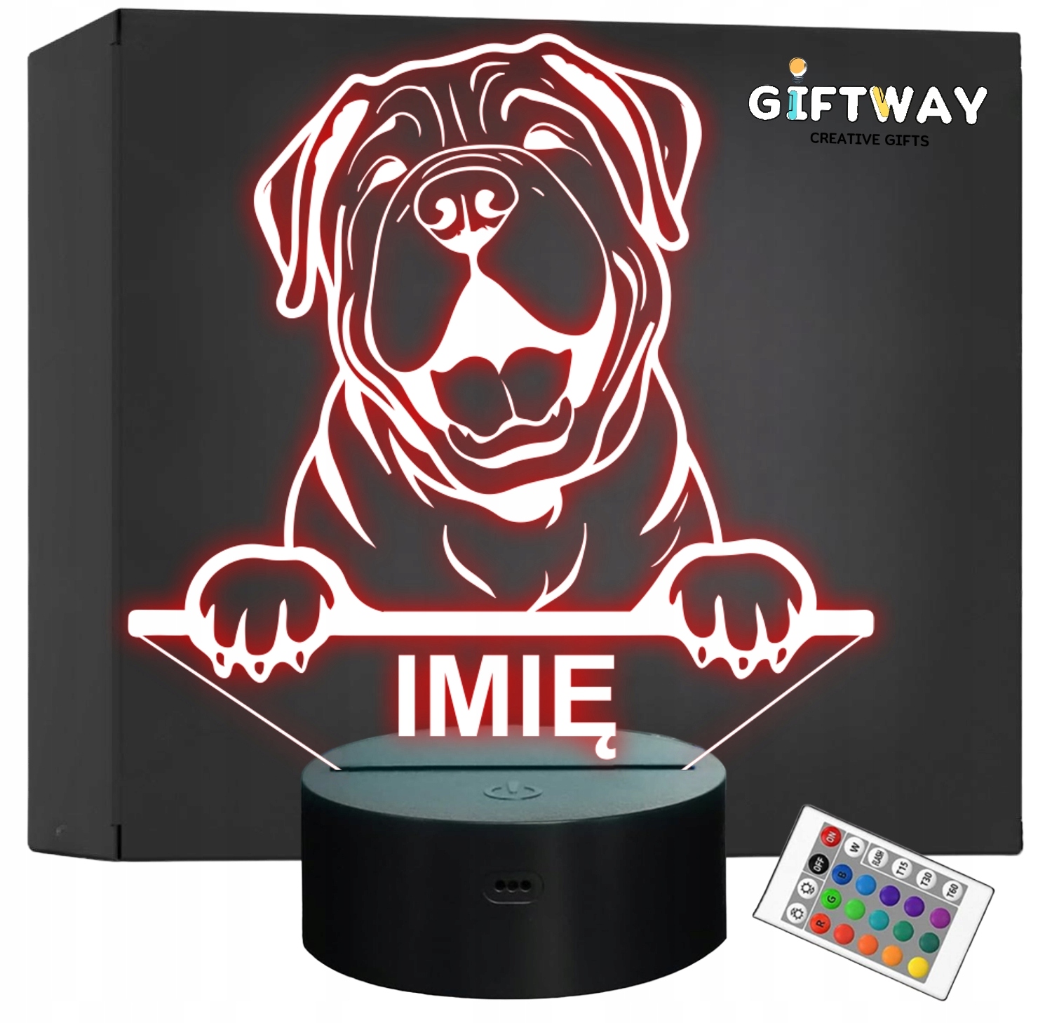 Nietypowa nocna lampka LED, która jest świetnym i kreatywnym pomysłem na prezent dla fana lub posiadacza psa rasy Shar Pei. Lampka przypomina iluzję, co daje świetny efekt wizualny oraz nadaje niepowtarzalnego klimatu, gdyż świeci w wielu kolorach i trybach!