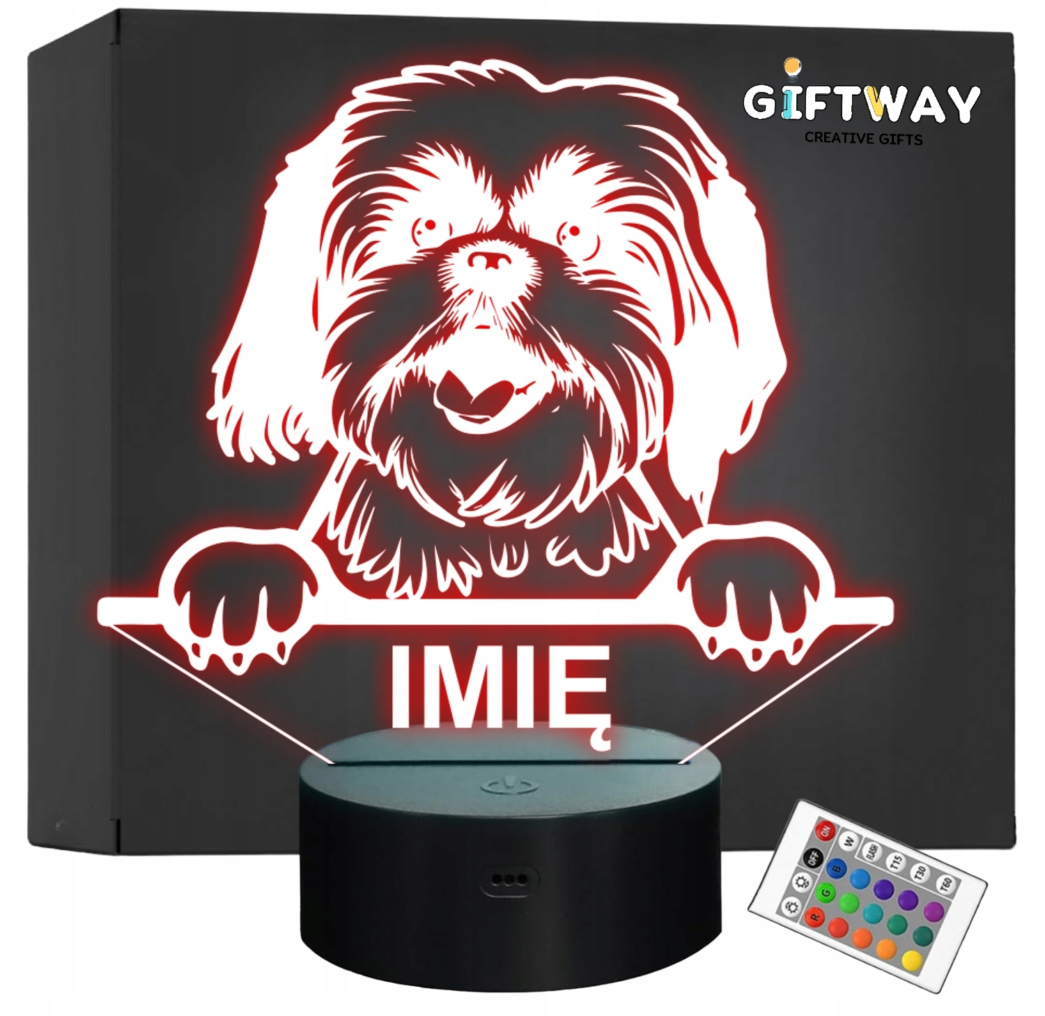 Nietypowa nocna lampka LED, która jest świetnym i kreatywnym pomysłem na prezent dla fana lub posiadacza psa rasy Shih tzu. Lampka przypomina iluzję, co daje świetny efekt wizualny oraz nadaje niepowtarzalnego klimatu, gdyż świeci w wielu kolorach i trybach!