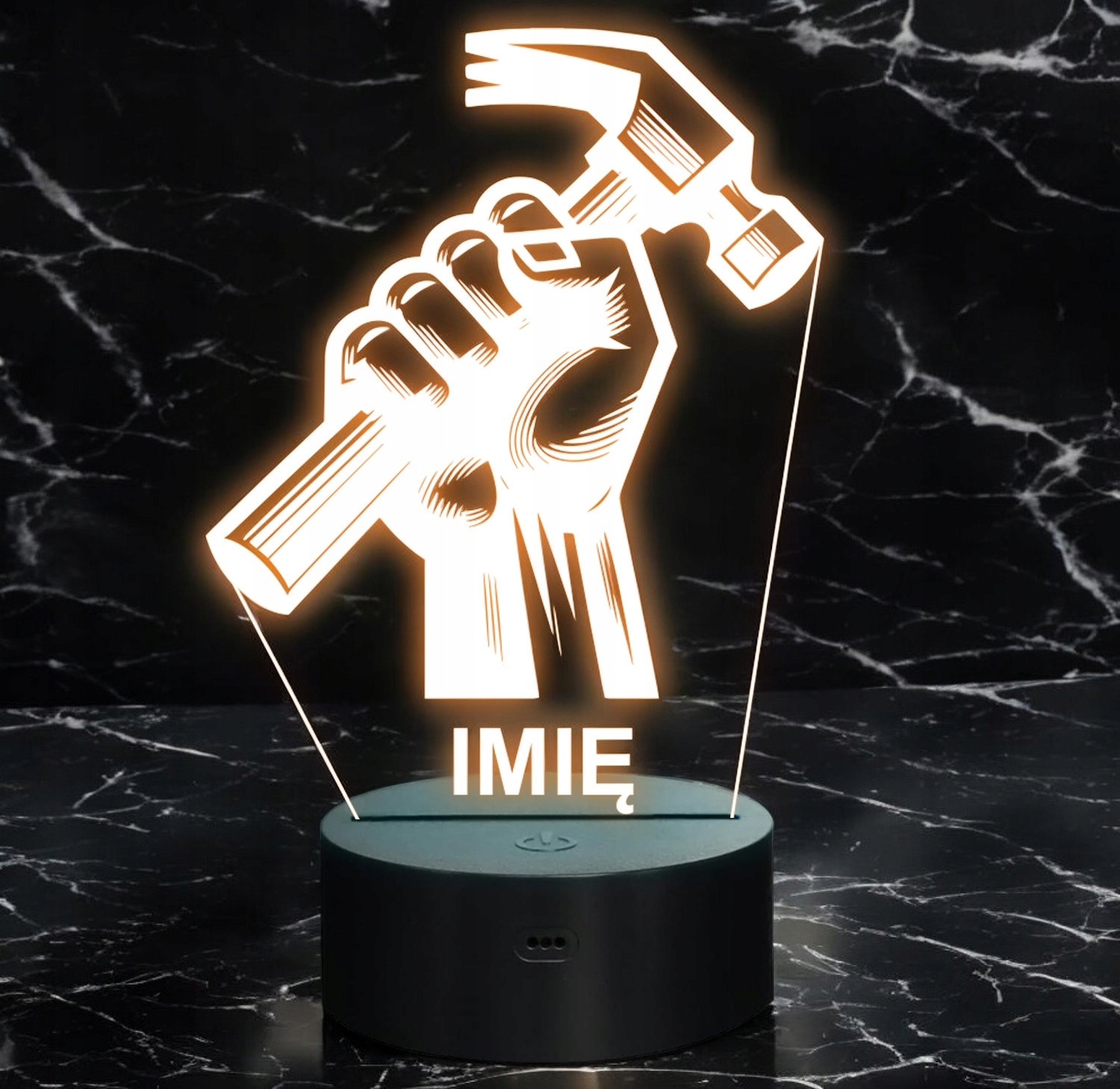 Lampka LED Personalizowana na Prezent – Ręka z Młotkiem