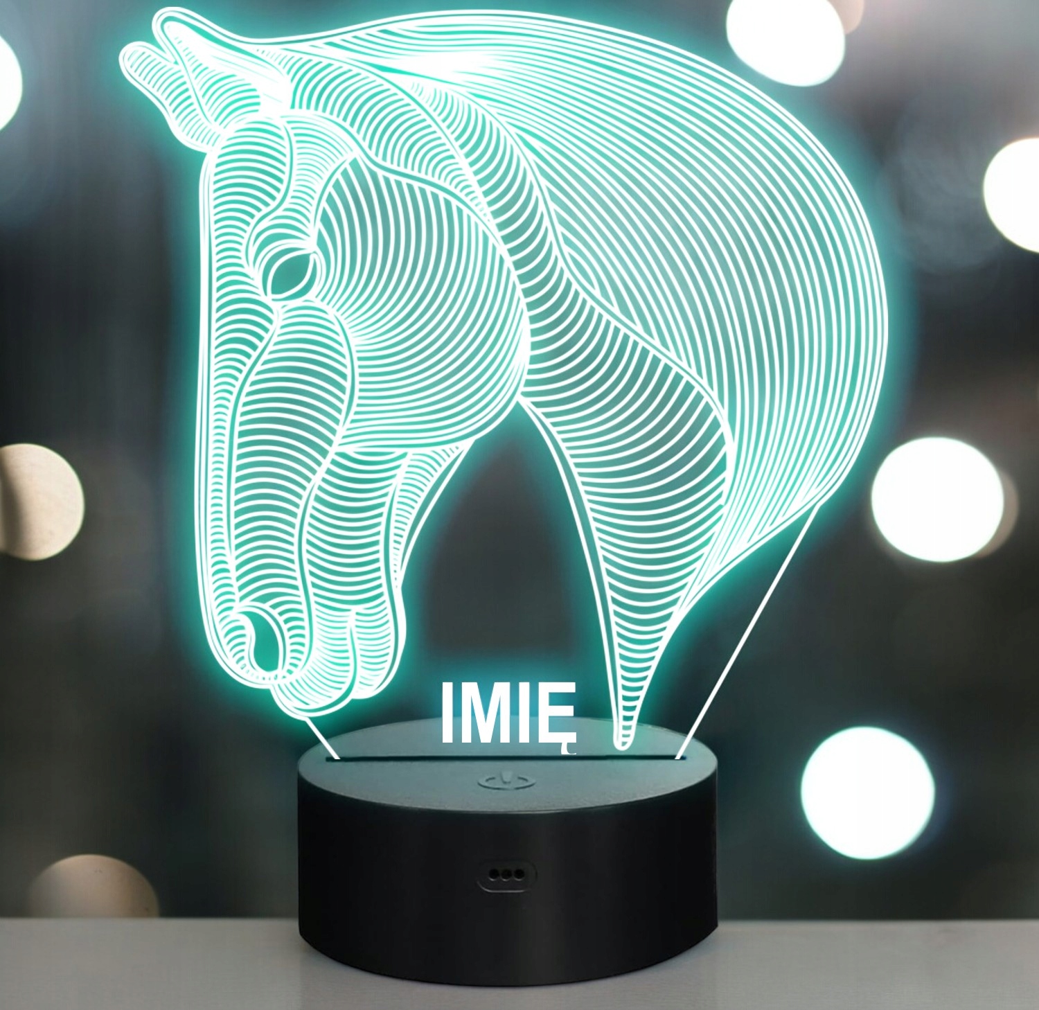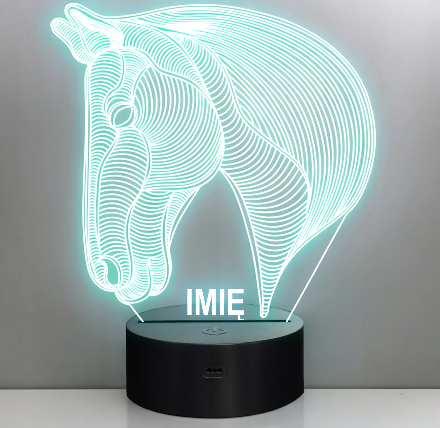 Lampka LED w Kształcie Głowy Konia z Imieniem – Personalizowana na Prezent