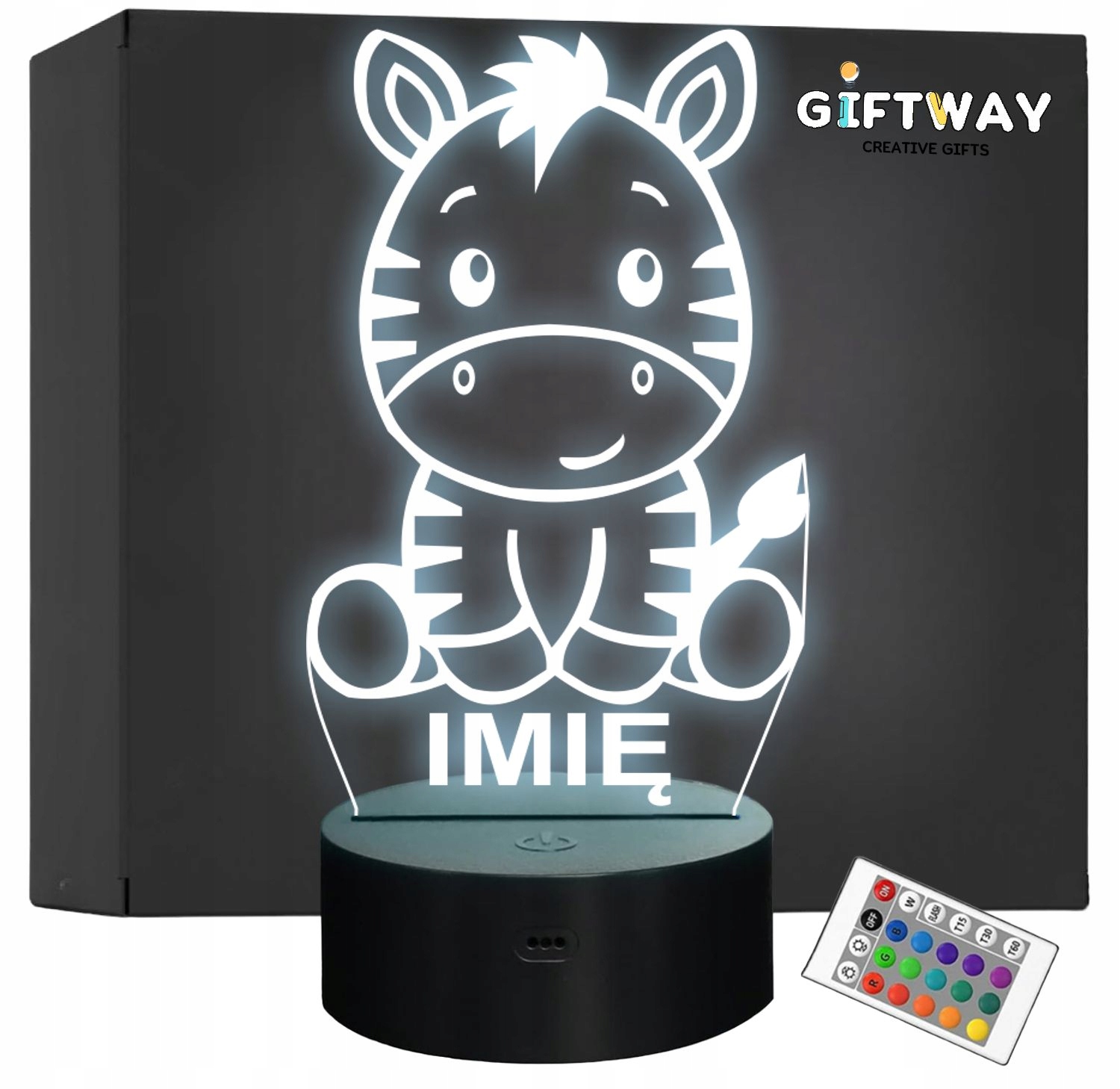 Lampka LED w kształcie Zebry z Imieniem – Personalizowana na Prezent dla dziecka