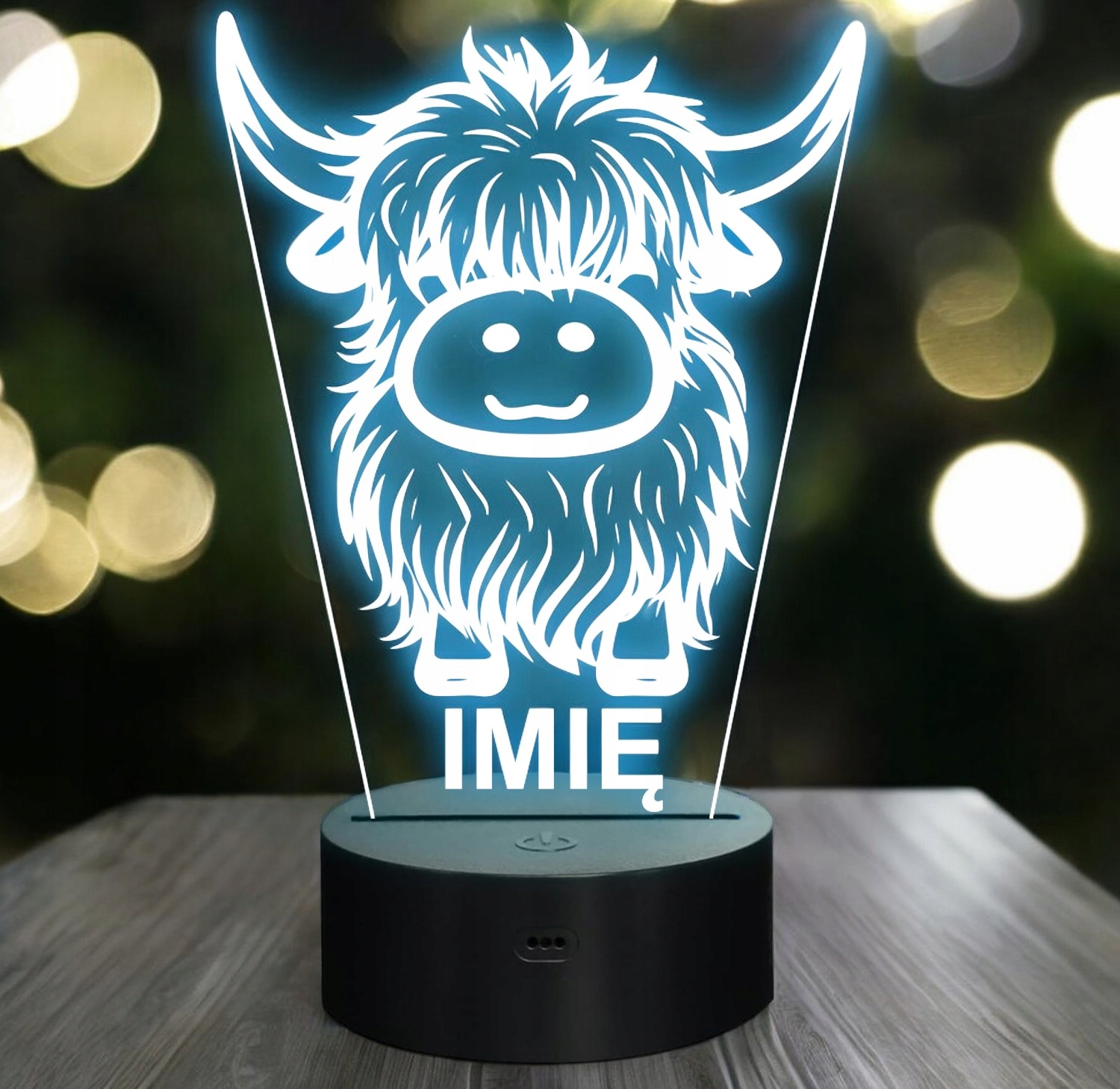 Lampka LED w kształcie Byka z Imieniem – Personalizowana na Prezent dla dziecka