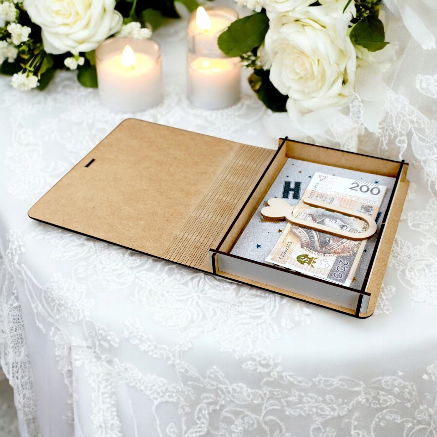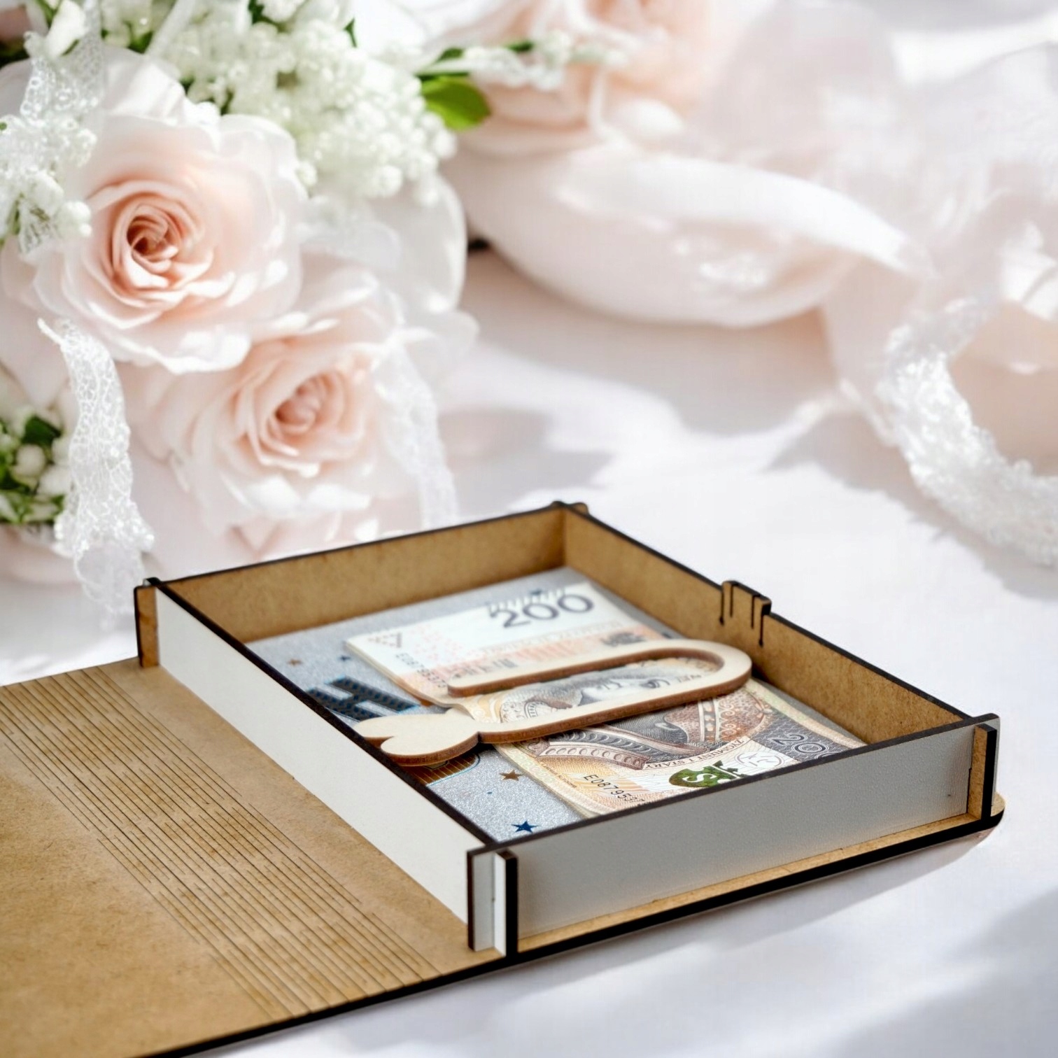 Piękne i nietypowe pudełko na pieniądze, które jest świetnym uzupełnieniem Twojego prezentu!