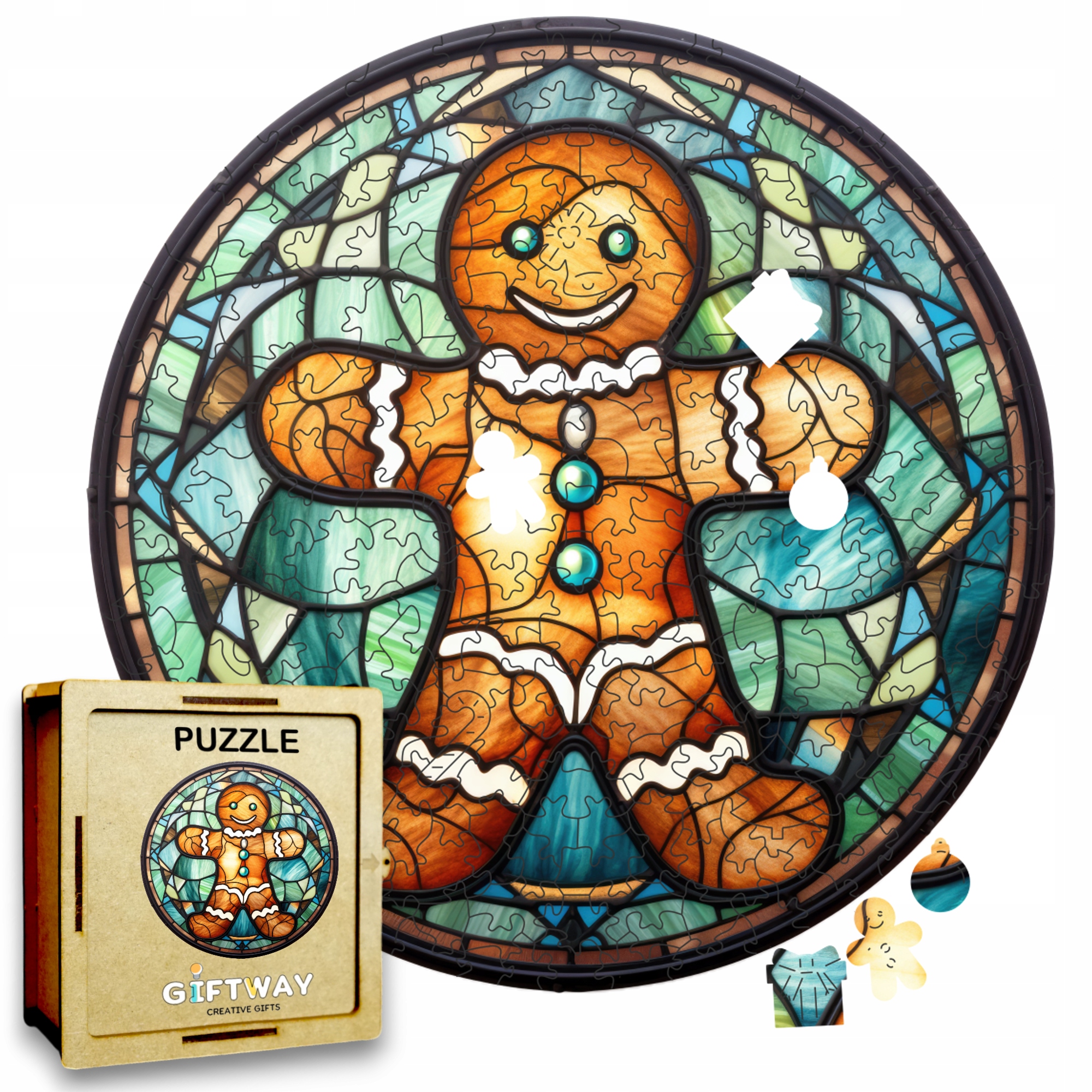 Puzzle Drewniane z Motywem Piernikowego Ludzika 217 el.