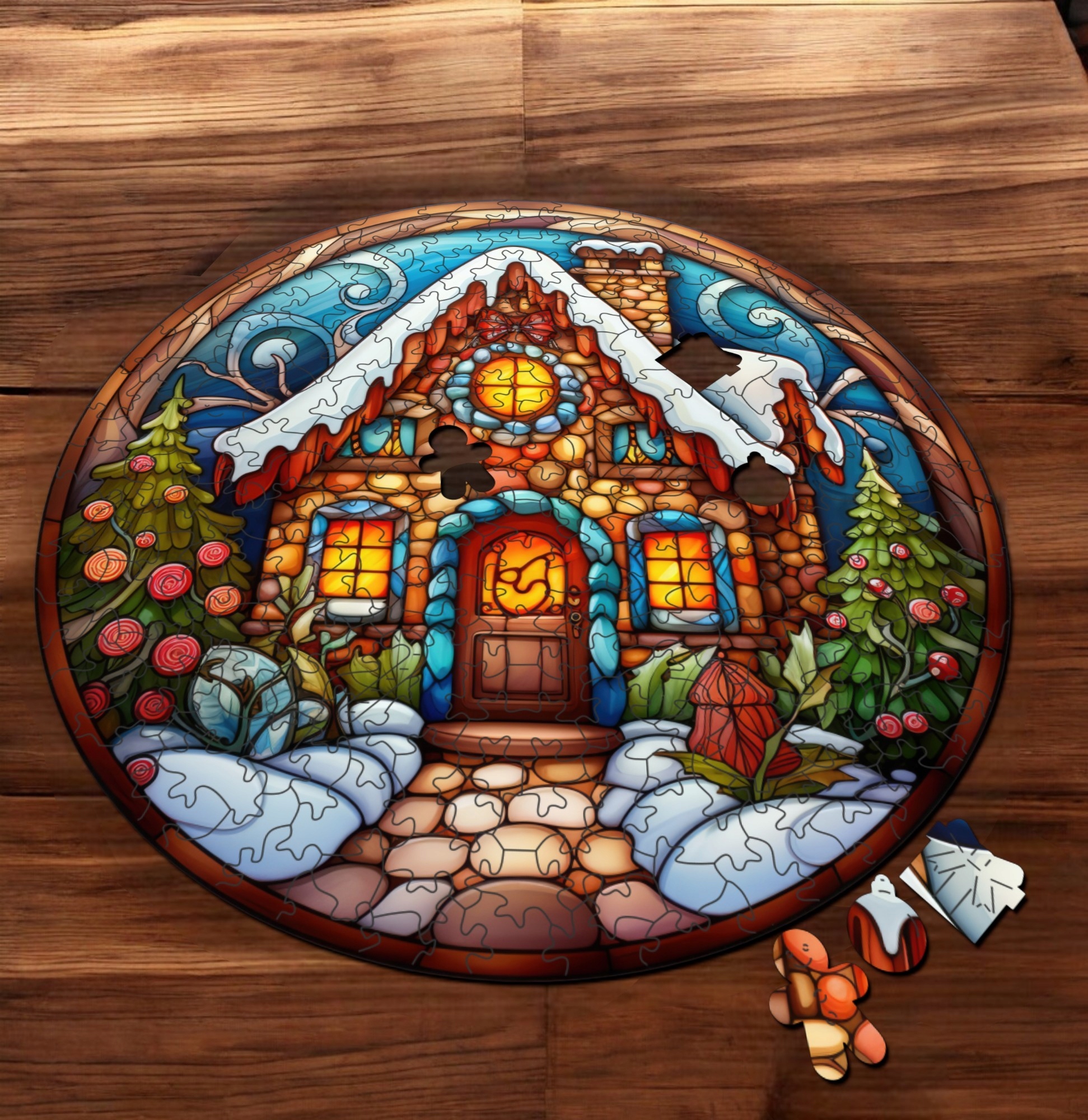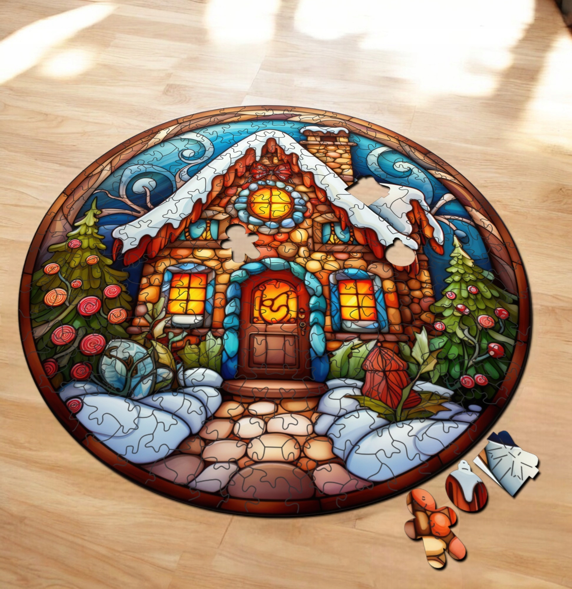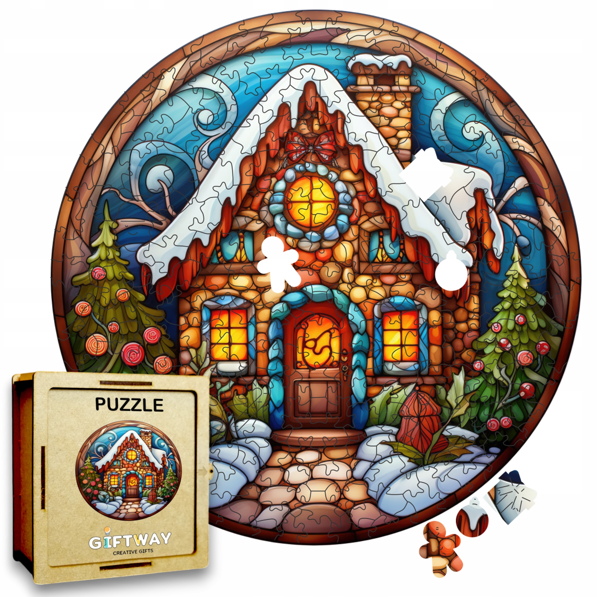 Puzzle Drewniane z Motywem Świątecznej Chatki 217 el.