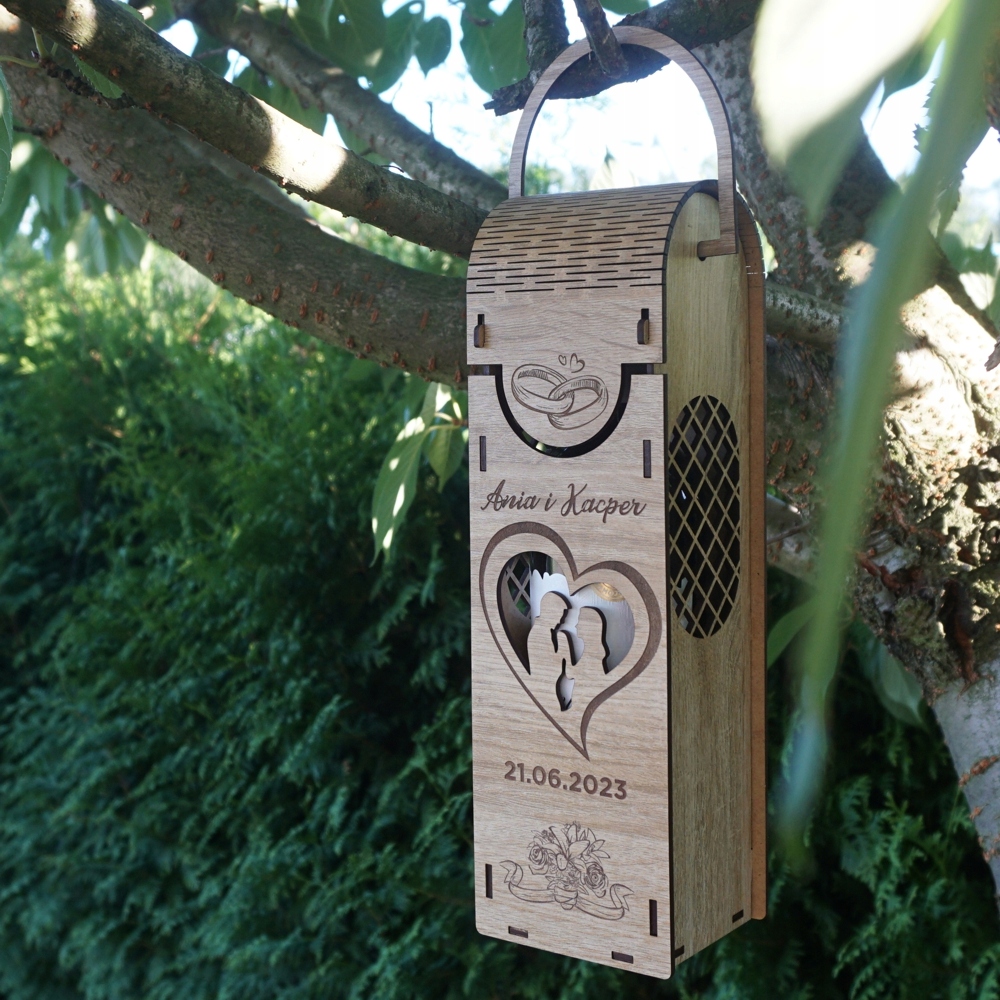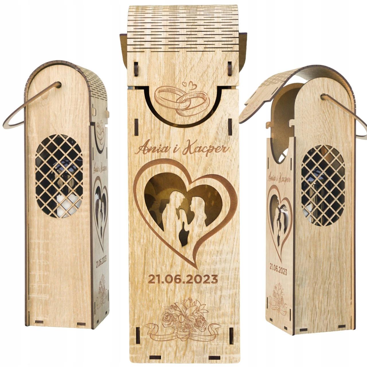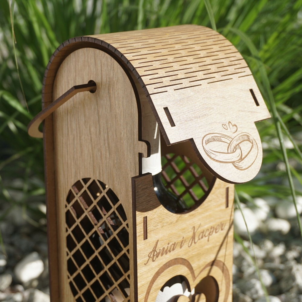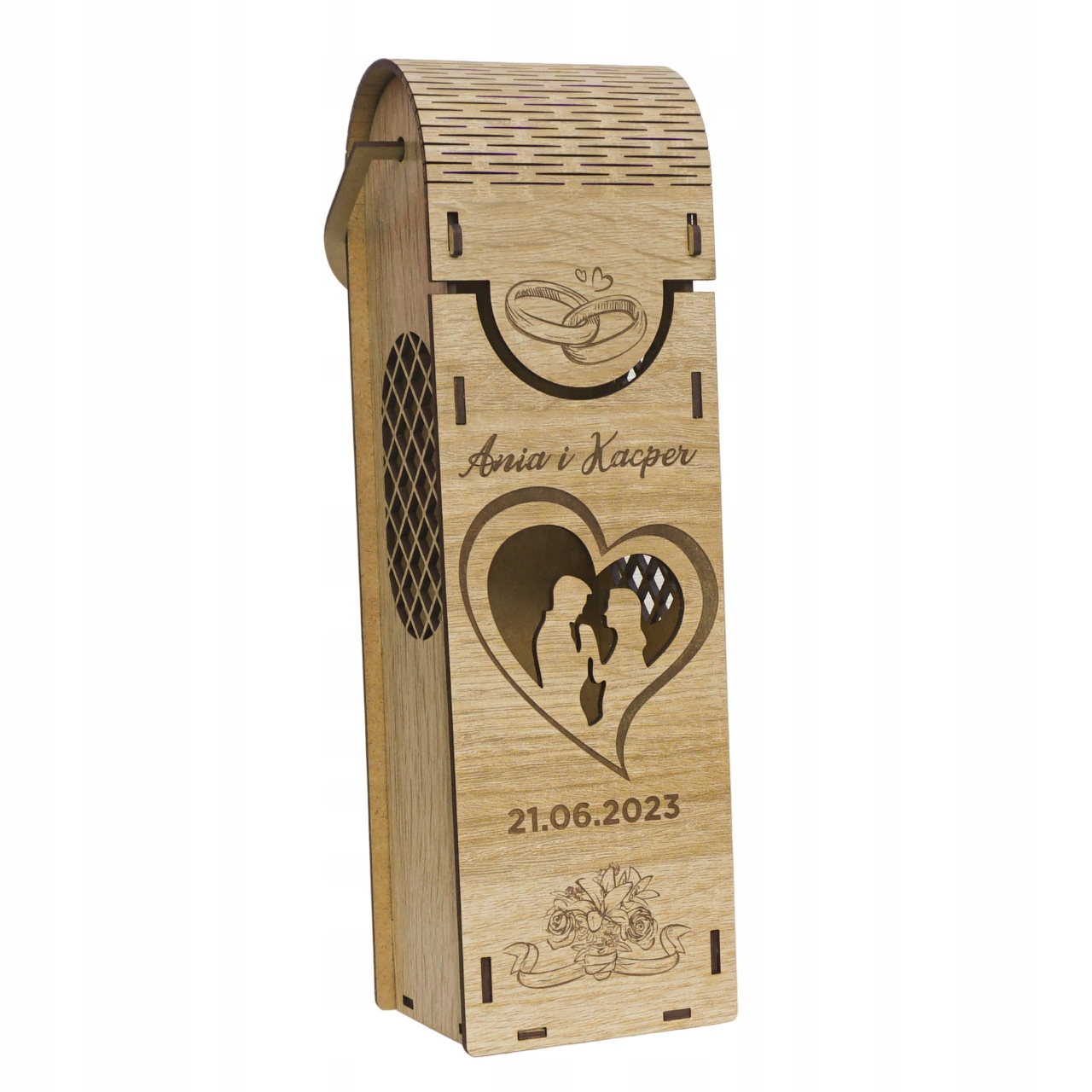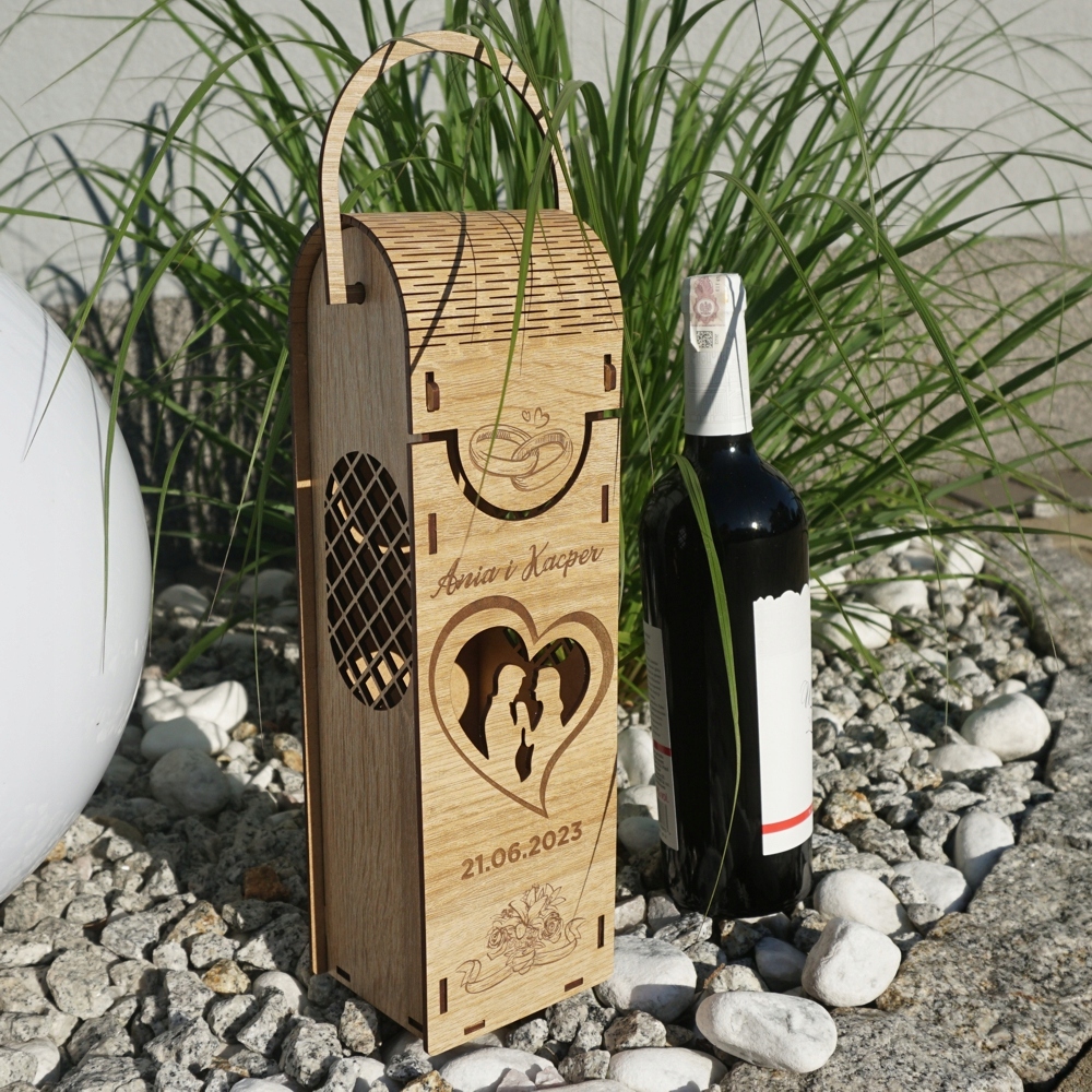Drewniana Skrzynka na Wino na Ślub dla Pary Młodej – Z Grawerem, na Prezent