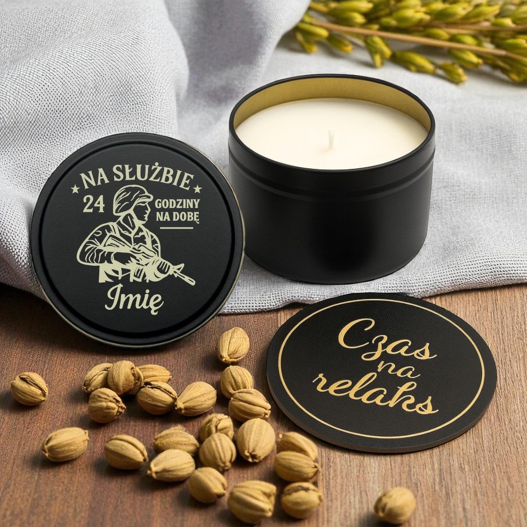Świeca Sojowa Personalizowana Zapachowa na Prezent dla Żołnierza v.1