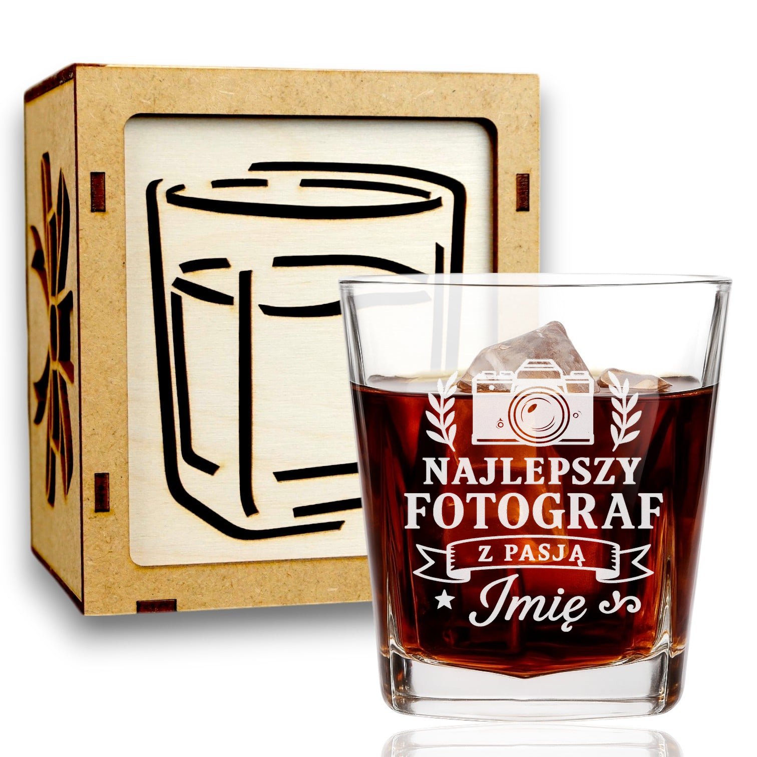 Personalizowana szklanka z grawerem w drewnianym pudełku to idealne połączenie klasyki z nutą indywidualności.